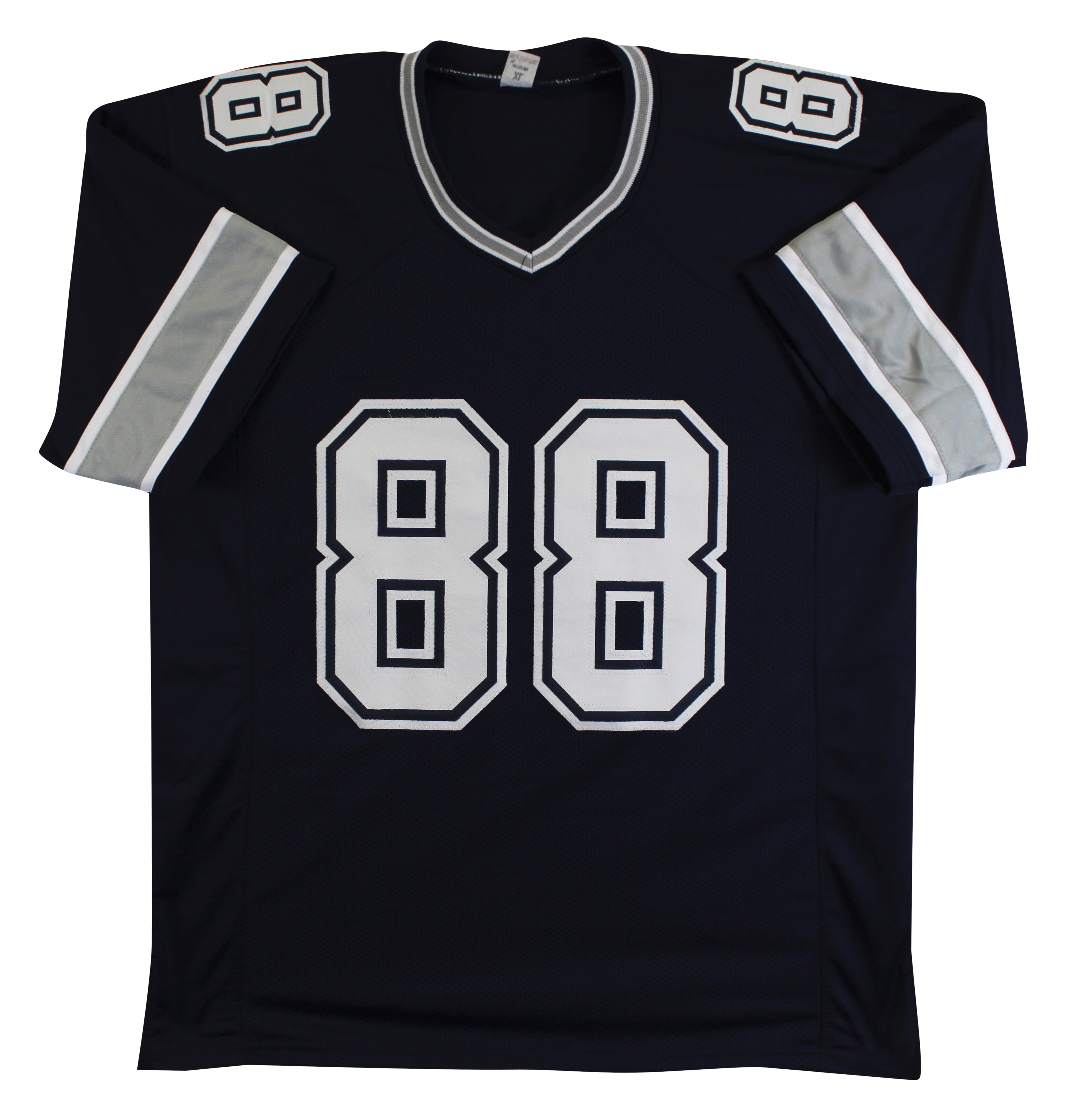 This Autographed Navy Pro Style Jersey has been Personally Signed by Dez Bryant of the Dallas Cowboys. This item is 100% Authentic to include a hologram by Beckett Authentication Services. This item will come with an affixed Beckett Authentication Services (BAS) authentication sticker, which includes a scannable QR code to verify authenticity. Please note that Beckett no longer provides serial-numbered COA cards, and the attached BAS sticker will serve as the complete authentication for this item. This is a BAS Witnessed Protection Program item which means a Beckett Authentication Service representative was present when this item was being signed. We conducted an autograph signing with Dez Bryant where multiples of the same item were signed. While the photographs are representative of this item, the size, placement and strength of the signature may vary. Each item is hand signed, therefore, each autograph is unique. This item can be verified through BAS Witnessed. This is a X-Large sized, non-branded, custom-stitched Jersey.