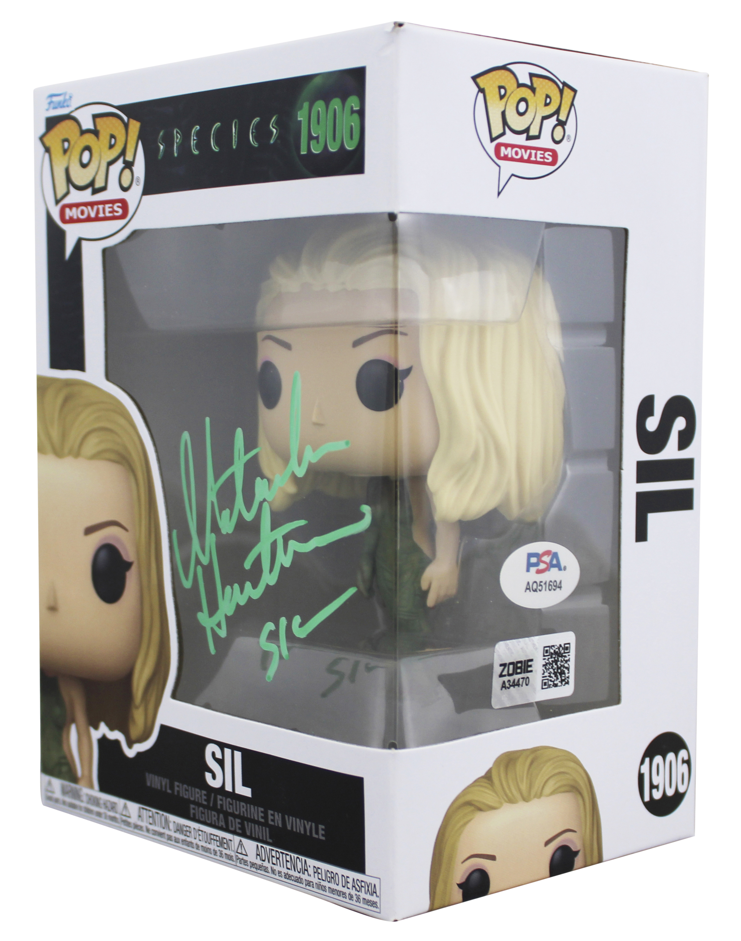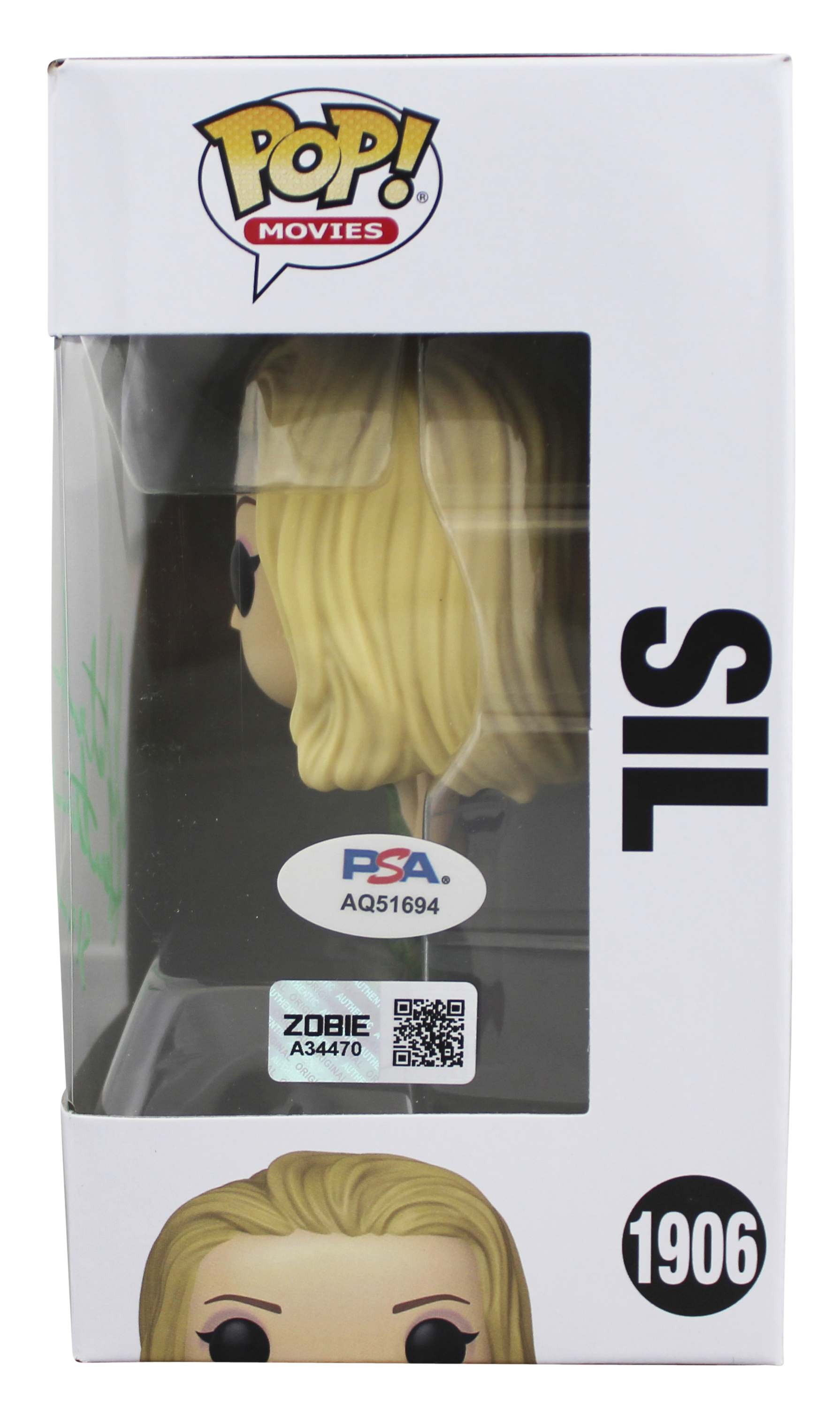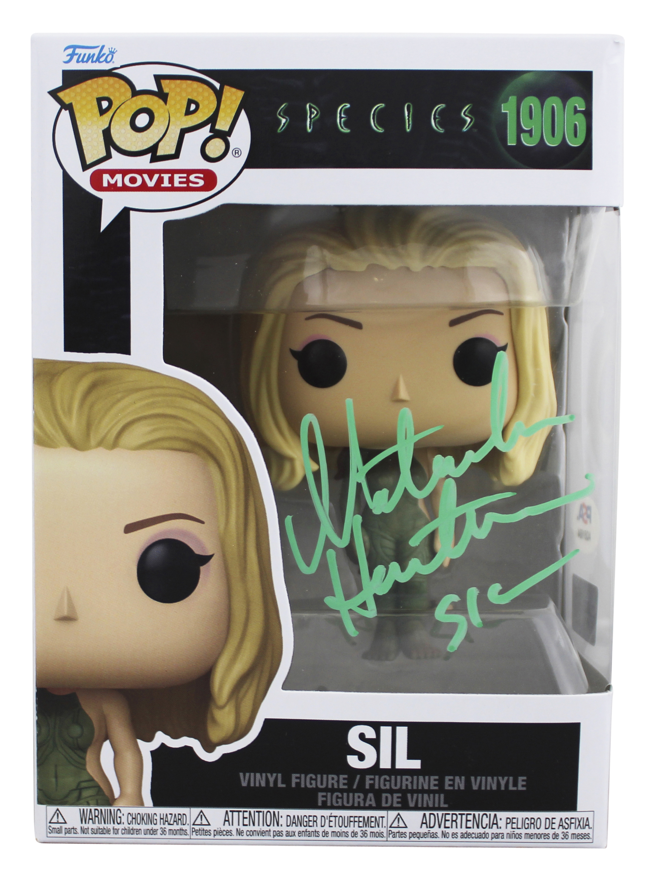 This Autographed Sil #1906 Funko Pop Vinyl Figure with the inscription of "Sil" has been Personally Signed by Natasha Henstridge of Species. This item is 100% Authentic and comes with a PSA/DNA Certification numbered Hologram. Please note that PSA/DNA no longer provides serial-numbered COA cards, and the attached PSA/DNA sticker will serve as the complete authentication for this item. The authenticity can be verified on Professional Sports Authenticators website. This will be shipped in a Pop Protector, each will have some handling wear from shipment to the signing and back. These would not be considered mint.