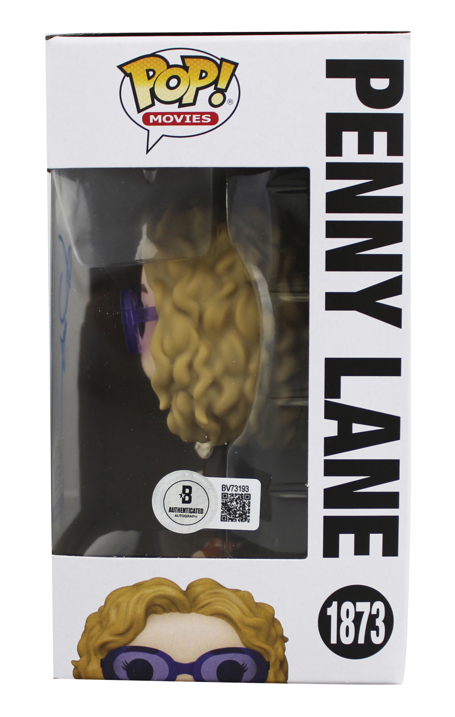 This Autographed Penny Lane #1873 Funko Pop Vinyl Figure has been Personally Signed by Kate Hudson of Almost Famous. This item is 100% Authentic to include a hologram by Beckett Authentication Services. This item will come with an affixed Beckett Authentication Services (BAS) authentication sticker, which includes a scannable QR code to verify authenticity. Please note that Beckett no longer provides serial-numbered COA cards, and the attached BAS sticker will serve as the complete authentication for this item. We have multiples of this same item. While the photographs are representative of this item, the size, placement and strength of the signature may vary. Each item is hand signed, therefore, each autograph is unique. This will be shipped in a Pop Protector, each will have some handling wear from shipment to the signing and back. These would not be considered mint.