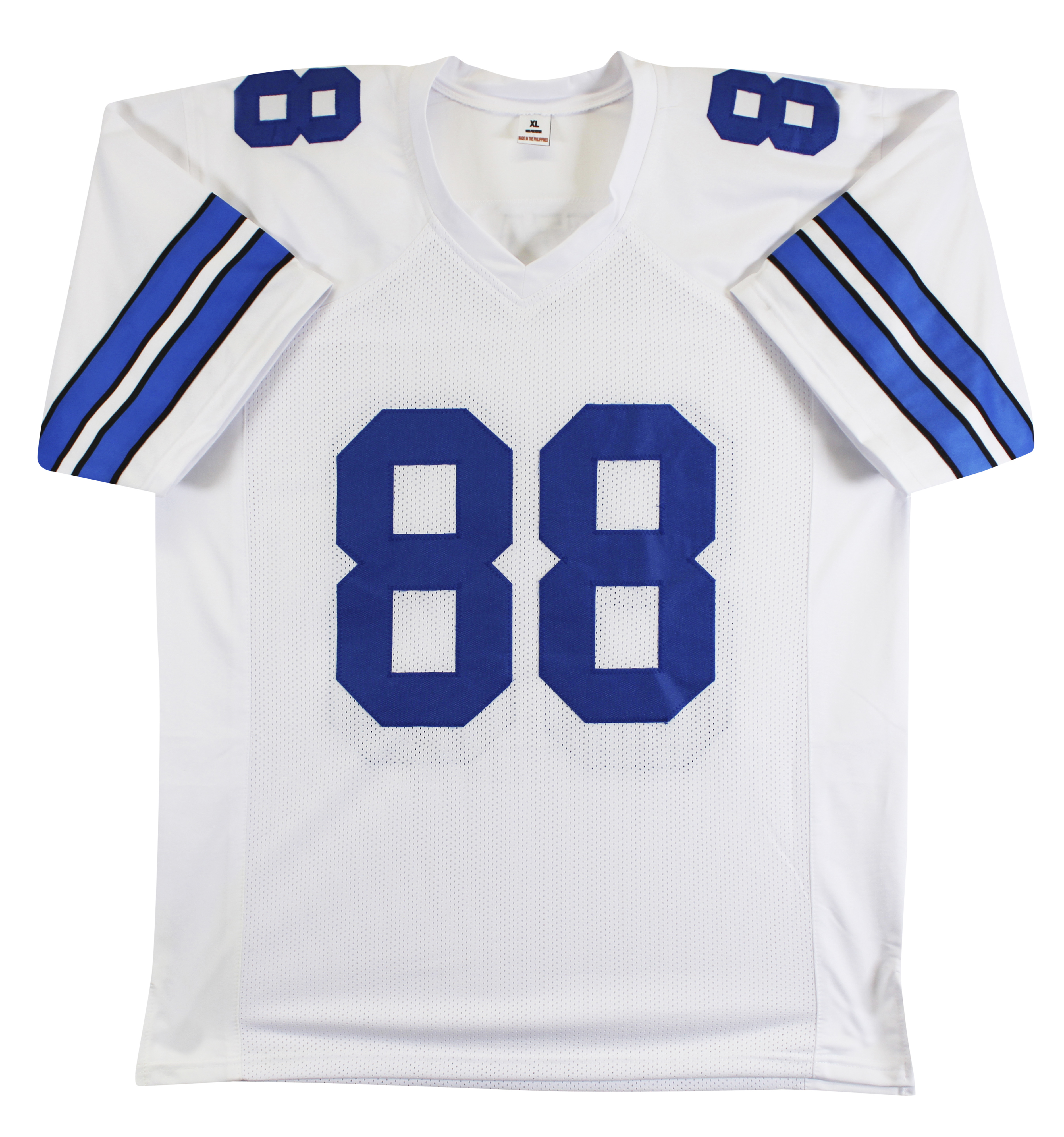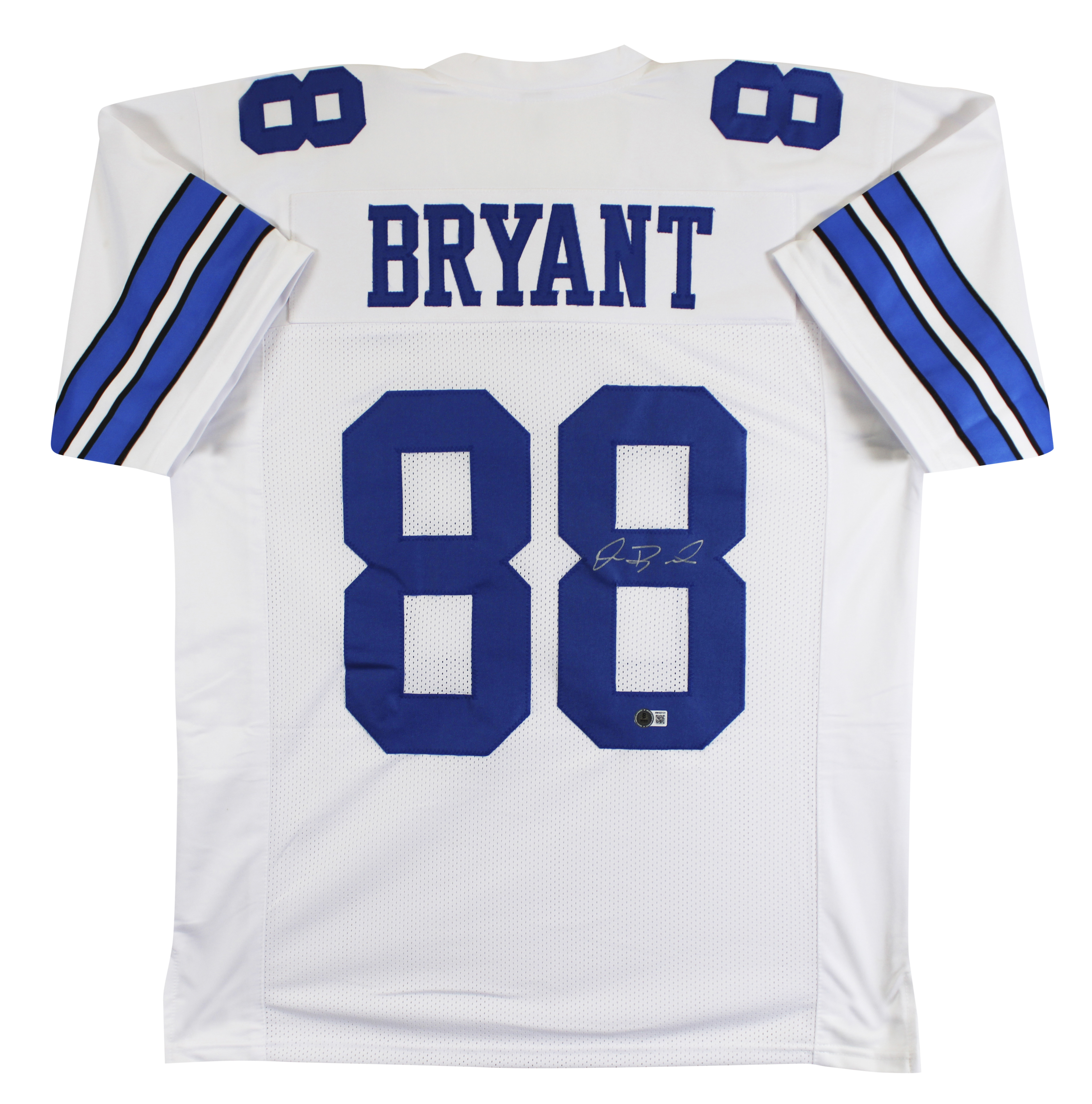 This Autographed White Pro Style Jersey has been Personally Signed by Dez Bryant of the Dallas Cowboys. This item is 100% Authentic to include a hologram by Beckett Authentication Services. This item will come with an affixed Beckett Authentication Services (BAS) authentication sticker, which includes a scannable QR code to verify authenticity. Please note that Beckett no longer provides serial-numbered COA cards, and the attached BAS sticker will serve as the complete authentication for this item. This is a BAS Witnessed Protection Program item which means a Beckett Authentication Service representative was present when this item was being signed. We conducted an autograph signing with Dez Bryant where multiples of the same item were signed. While the photographs are representative of this item, the size, placement and strength of the signature may vary. Each item is hand signed, therefore, each autograph is unique. This item can be verified through BAS Witnessed. This is a X-Large sized, non-branded, custom-stitched Jersey.