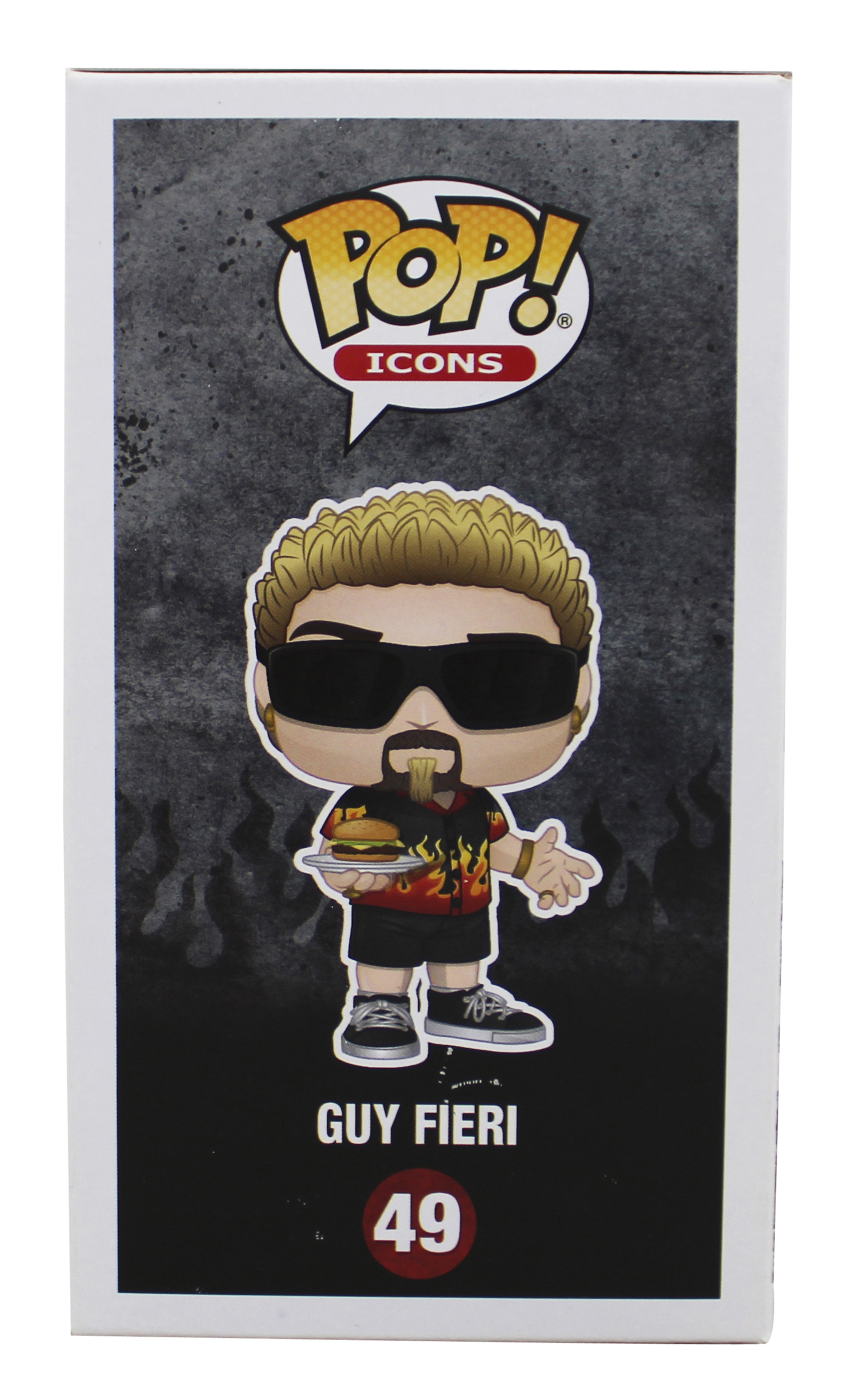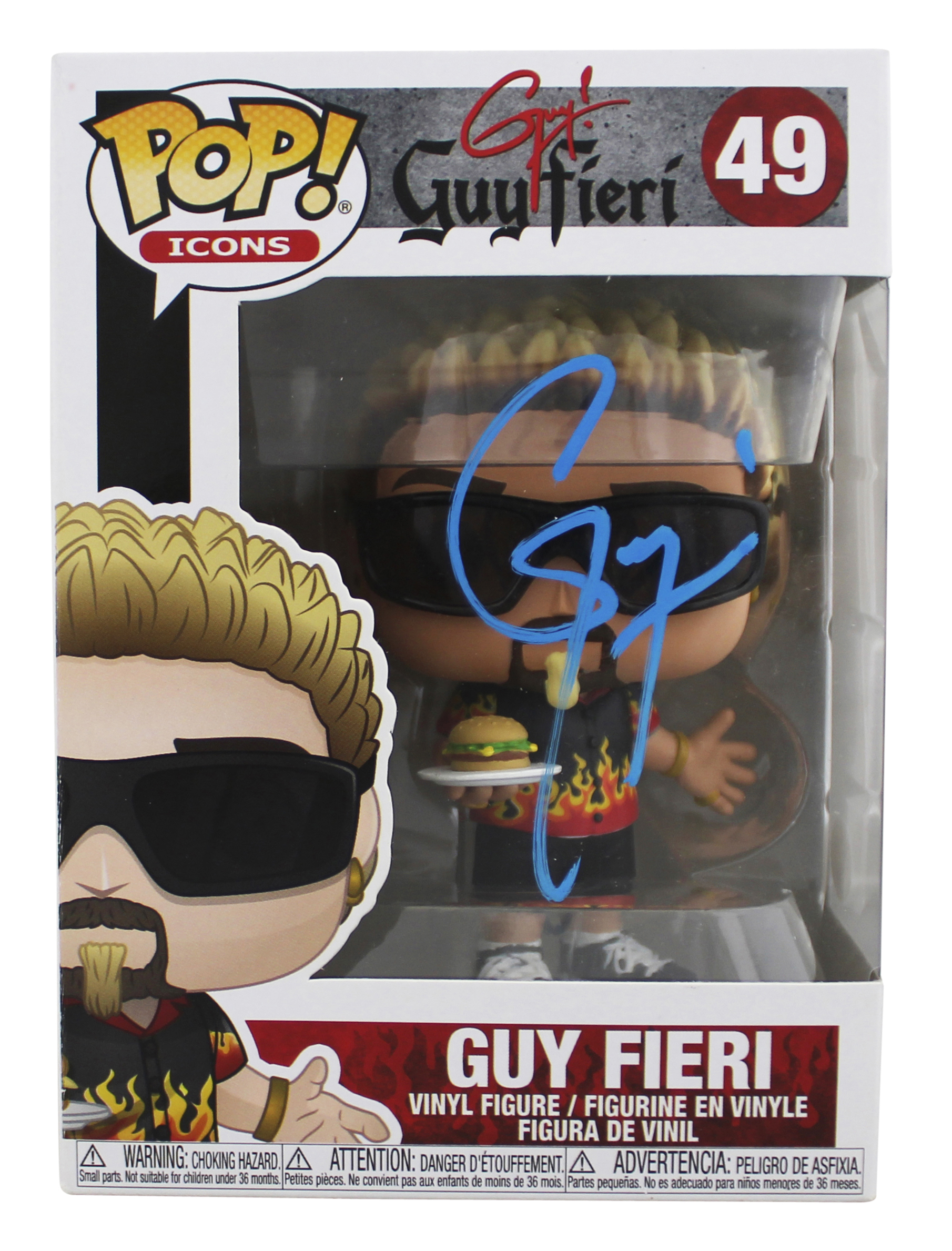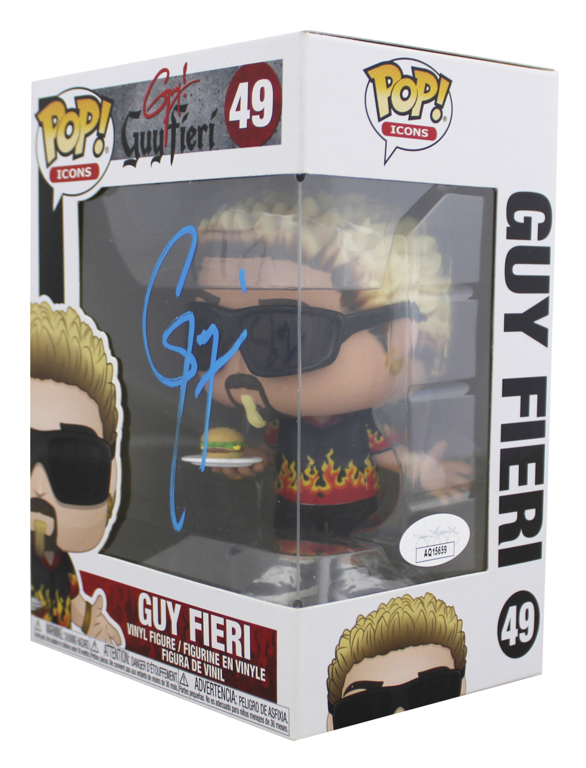 This Autographed Guy Fieri #49 Funko Pop Vinyl Figure has been Personally Signed by Guy Fieri of Diners, Drive-Ins & Dives. This item is 100% Authentic to include a Certificate of Authenticity (COA) / hologram by JSA. The authenticity can be verified on JSA website. This item will ship in a Pop! Protector, please refer to the photos for condition of the item prior to purchase, these are in good condition but would not be considered mint.