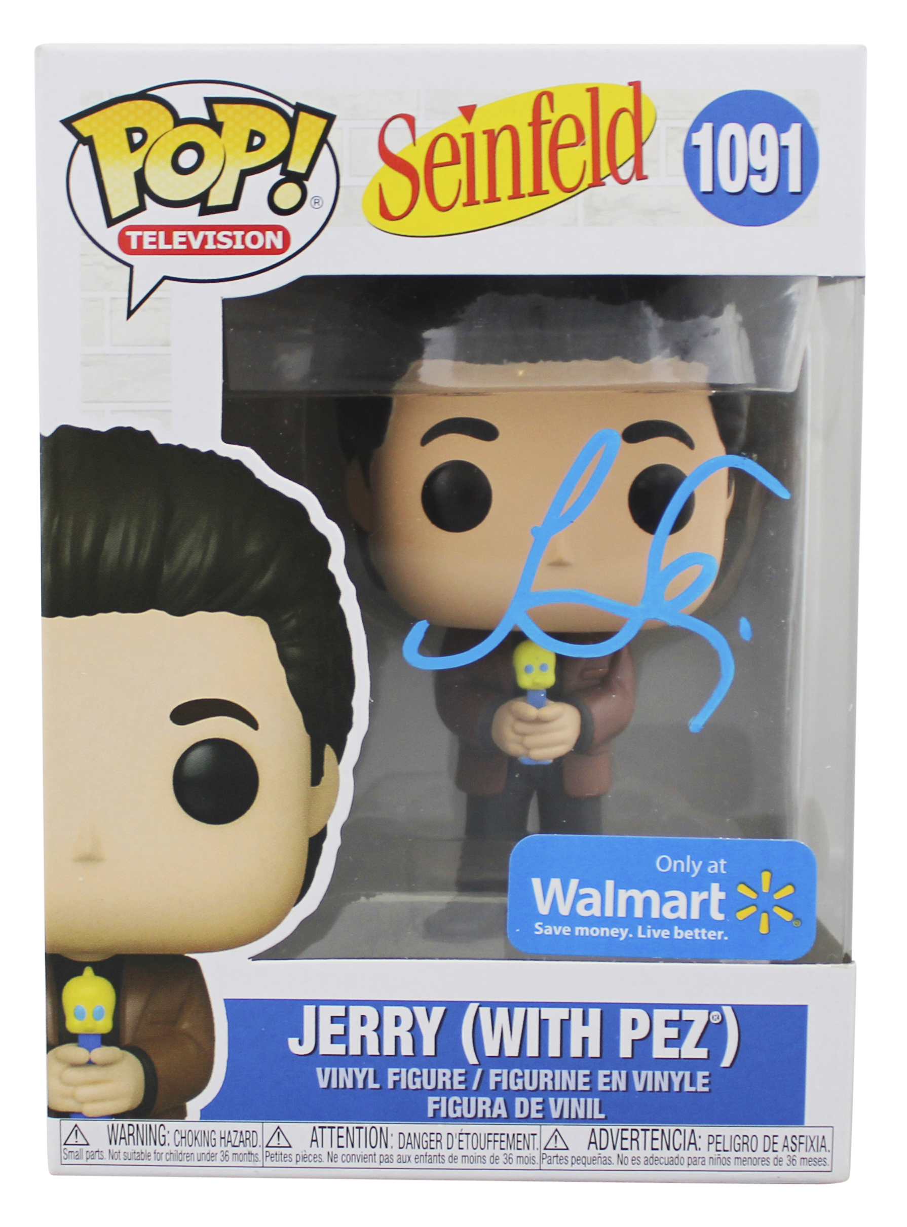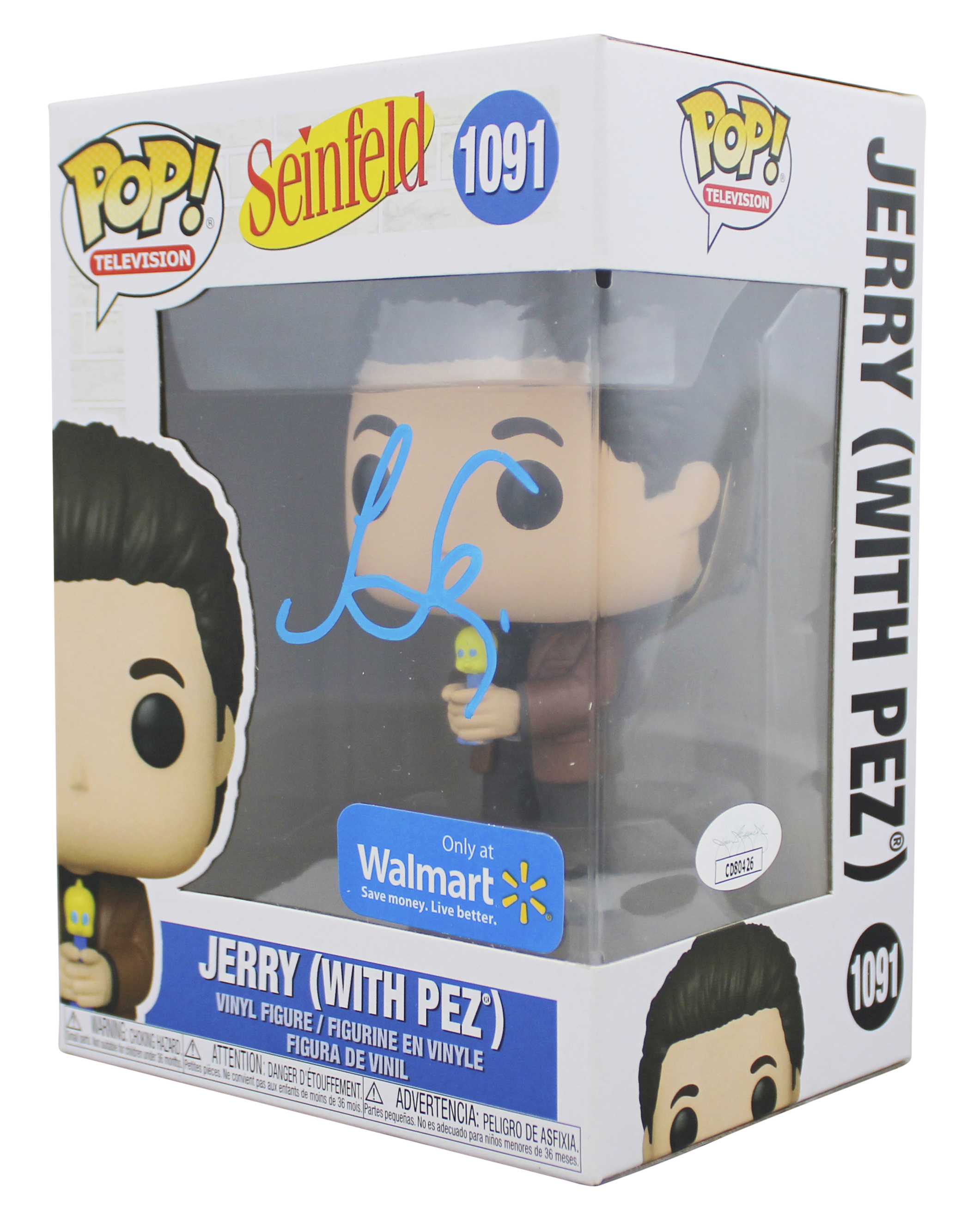 This Autographed Jerry (With Pez) #1091 Funko Pop Vinyl Figure has been Personally Signed by Jerry Seinfeld of Seinfeld. This item is 100% Authentic to include a Certificate of Authenticity (COA) / hologram by JSA. The authenticity can be verified on JSA website. This item will ship in a Pop! Protector, please refer to the photos for condition of the item prior to purchase, these are in good condition but would not be considered mint.