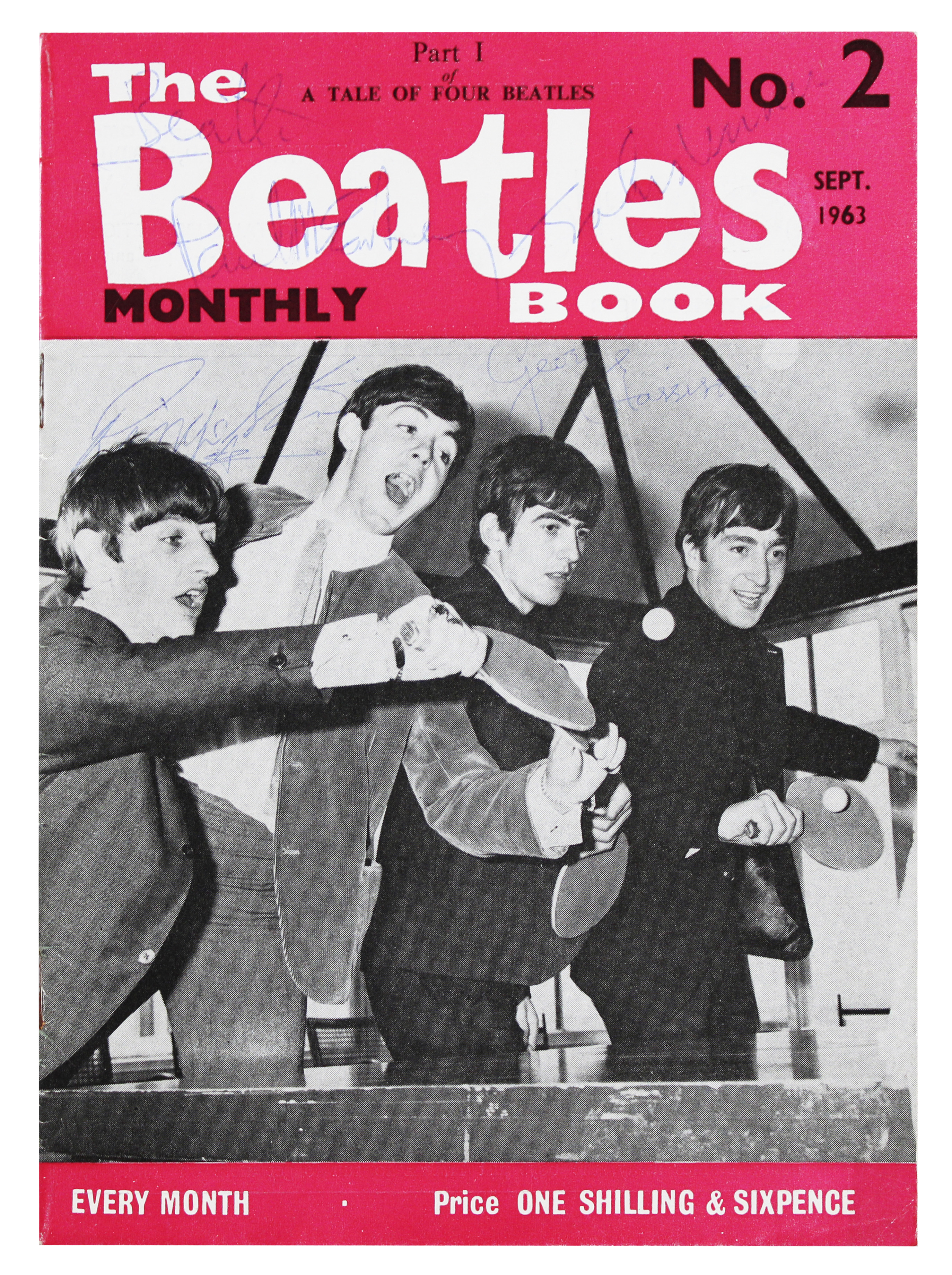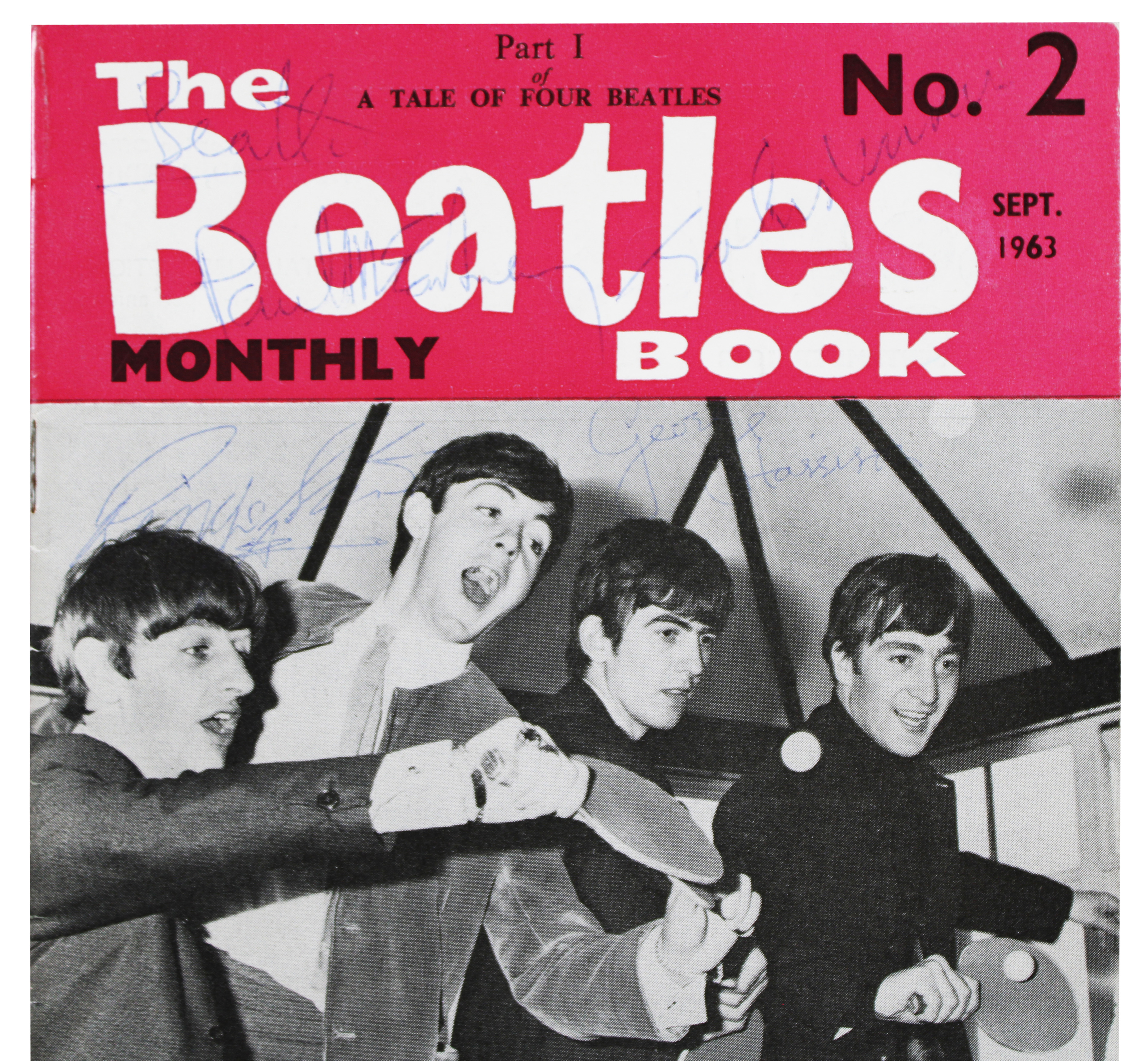 This Autographed Magazine with the inscription of "Beatles (McCartney)" has been Personally Signed by John Lennon, George Harrison, Ringo Starr, and Paul McCartney of The Beatles. This item is 100% Authentic to include a Certificate of Authenticity (COA) / hologram by JSA. The authenticity can be verified on JSA website. Cultural Significance: "The Beatles Monthly Book" was a publication that provided fans with insights into the band during the peak of Beatlemania. This specific issue is part of a series that was published from 1963 to 1969, which included exclusive photos and stories about the band's activities during that time. The presence of signatures from all four members signifies its rarity as a collectible from the era when The Beatles held significant global influence.