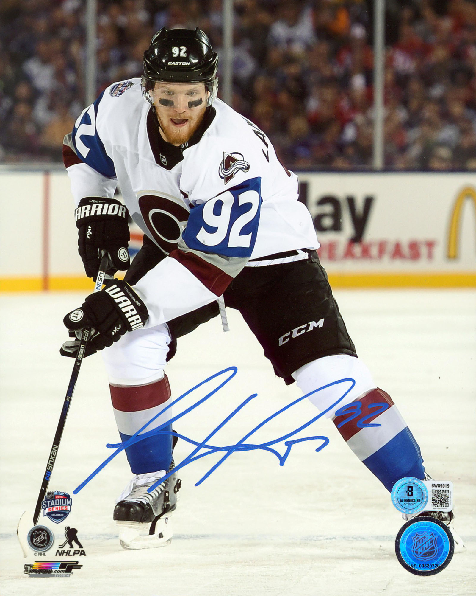 This Autographed Vertical 8x10 Photo has been Personally Signed by Gabriel Landeskog of the Colorado Avalanche. This item is 100% Authentic to include a hologram by Beckett Authentication Services. This item will come with an affixed Beckett Authentication Services (BAS) authentication sticker, which includes a scannable QR code to verify authenticity. Please note that Beckett no longer provides serial-numbered COA cards, and the attached BAS sticker will serve as the complete authentication for this item. The authenticity can be verified on Beckett Authentication Services website.
