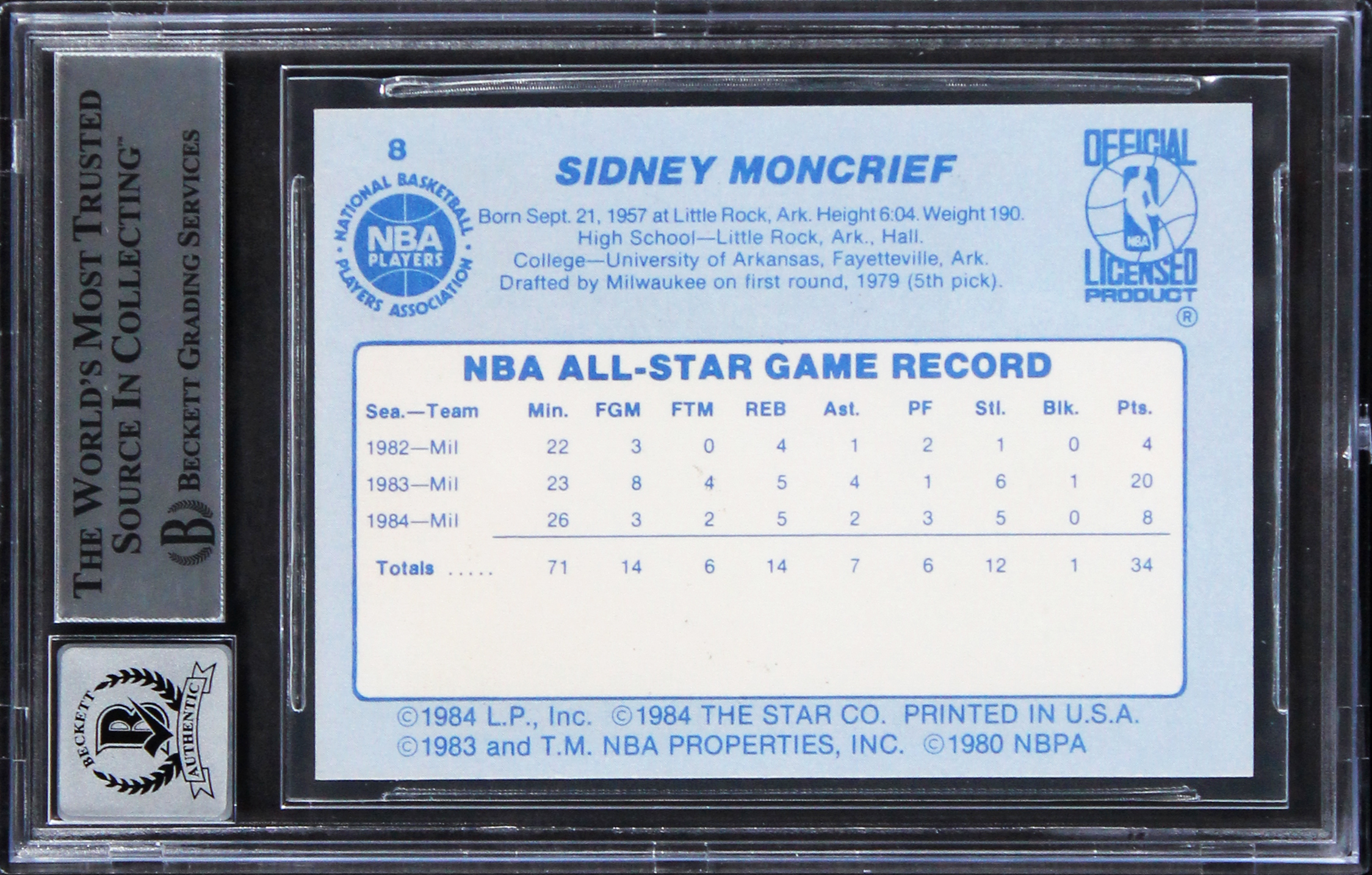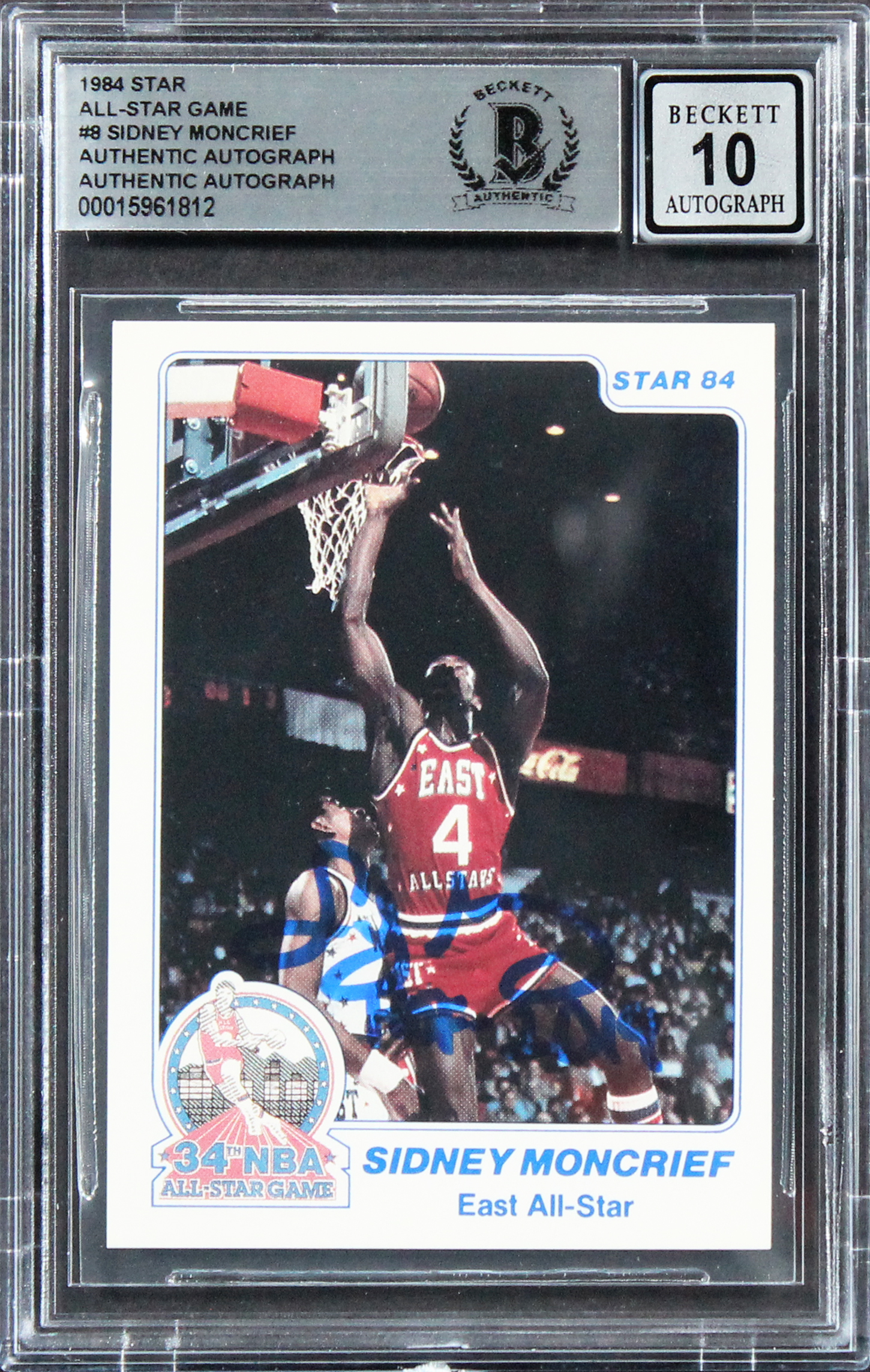 Bucks Sidney Moncrief Signed 1984 Star All-Star Game #8 Card Auto 10! BAS Slab
