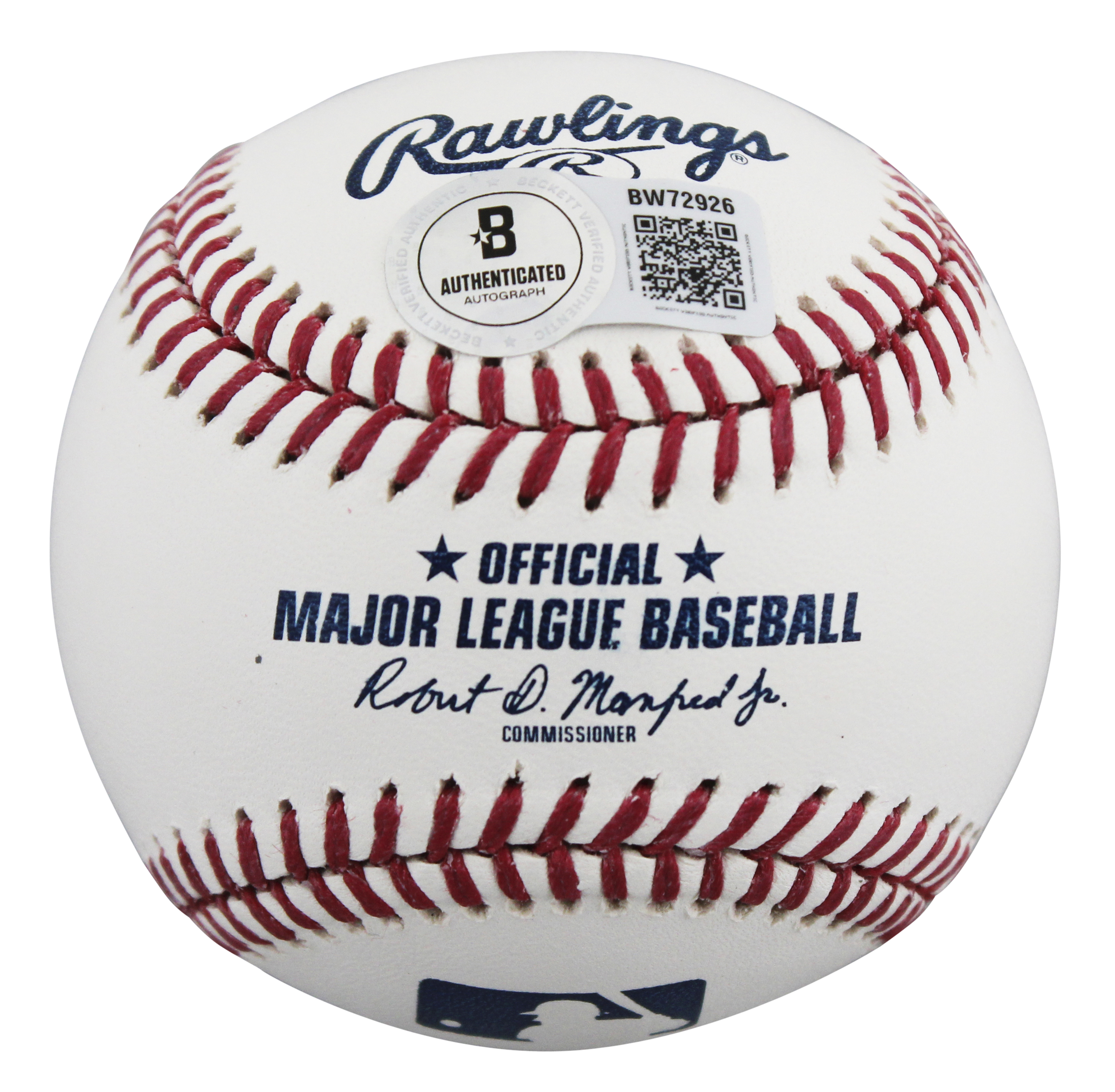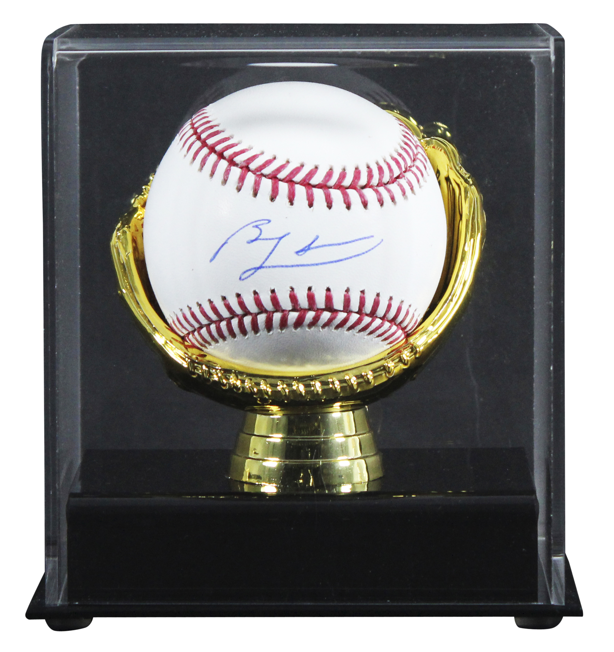 This Autographed Robert Manfred OML Baseball W/ Gold Glove Acrylic Display Case has been Personally Signed by Ben Zobrist of the Chicago Cubs. This item is 100% Authentic to include a hologram by Beckett Authentication Services. This item will come with an affixed Beckett Authentication Services (BAS) authentication sticker, which includes a scannable QR code to verify authenticity. Please note that Beckett no longer provides serial-numbered COA cards, and the attached BAS sticker will serve as the complete authentication for this item. We conducted an autograph signing with Ben Zobrist where multiples of the same item were signed. While the photographs are representative of this item, the size, placement and strength of the signature may vary. Each item is hand signed, therefore, each autograph is unique. This item can be verified through BAS.