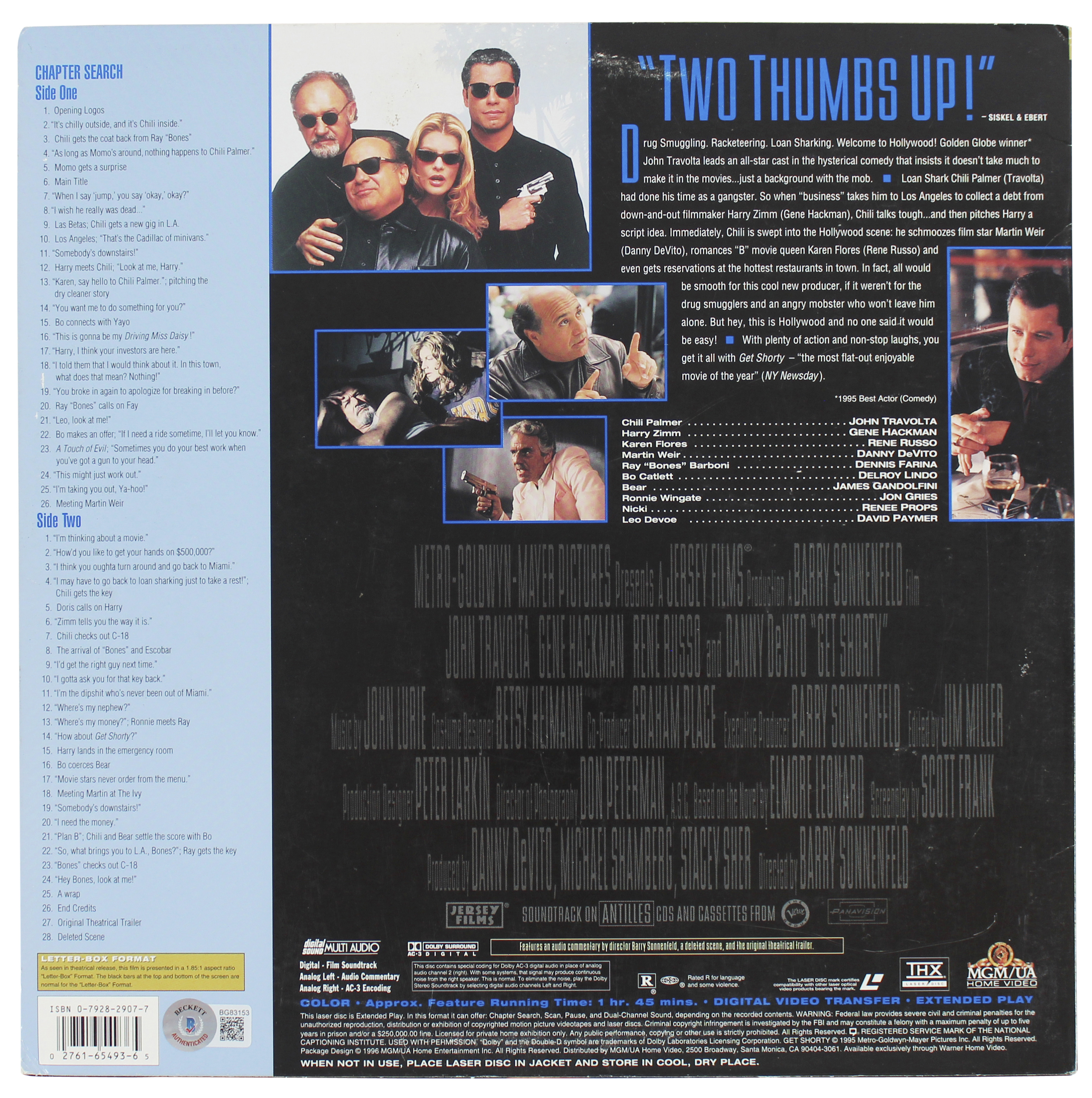 This Autographed Get Shorty Laserdisc Without Disc has been Personally Signed by John Travolta of Get Shorty. This item is 100% Authentic to include a hologram by Beckett Authentication Services. This item may come with the new Beckett Authentication hologram that has a scannable QR code rather than the traditional COA. If you would like to have a COA, you are welcome to reach out to Beckett for a printed certification once you receive your item. The authenticity can be verified on Beckett Authentication Services website.