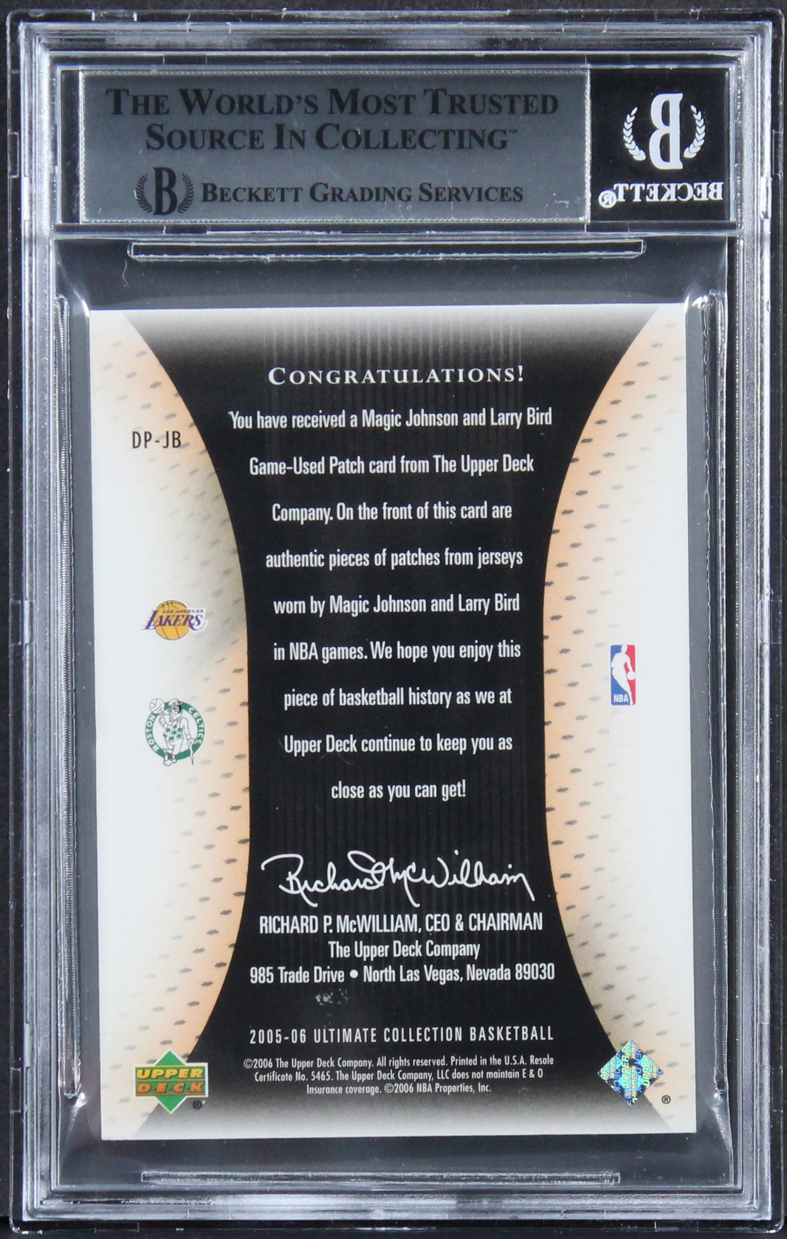 Magic Johnson & Larry Bird Signed 2005 Ultimate Patches DPJB 11/40 Card BAS Slab