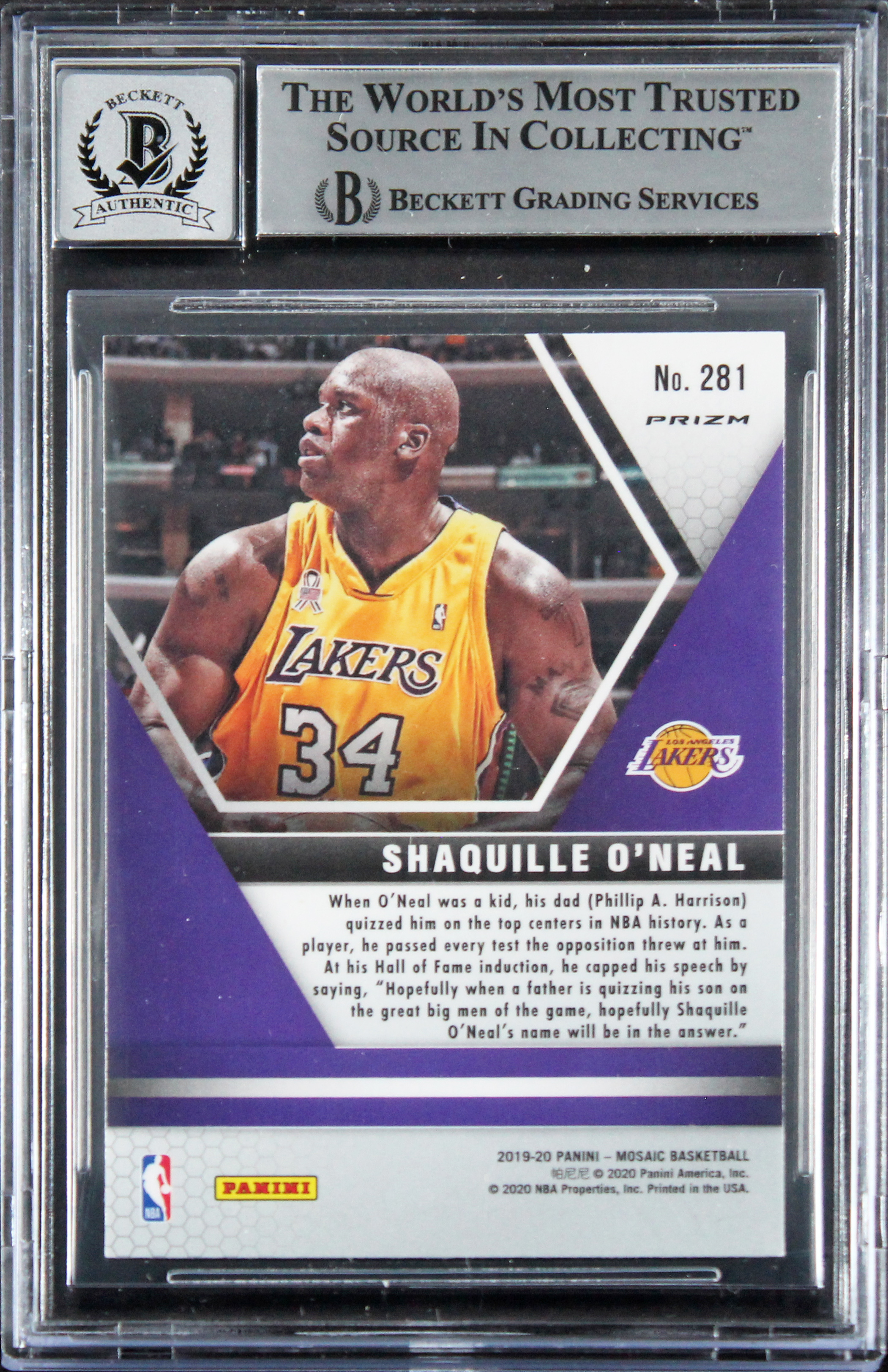 This Autographed Auto Graded Gem Mint 10! 2019 Panini Mosaic Mosaic Orange Reactive #281 Card has been Personally Signed by Shaquille O'Neal of the Los Angeles Lakers. This item is 100% Authentic, it comes slabbed and authenticated by Beckett Authentication Services. The authenticity can be verified on Beckett Authentication Services website.