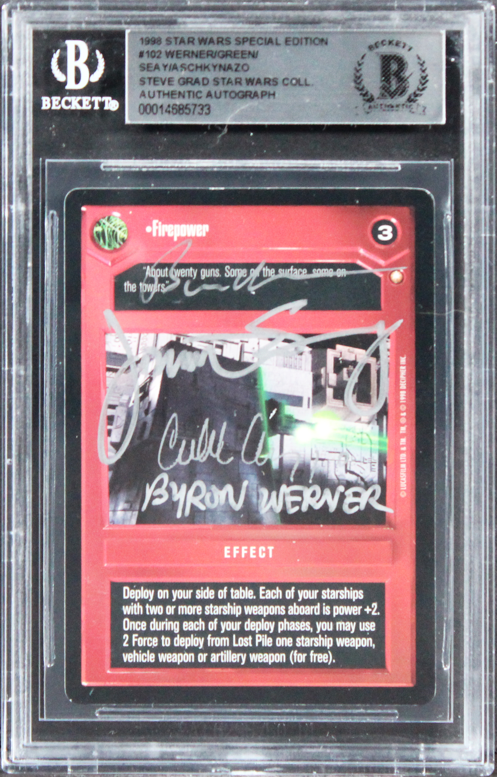 Star Wars (4) Werner, Seay +2 Signed 1998 SW Special Coll #102 Card BAS Slabbed