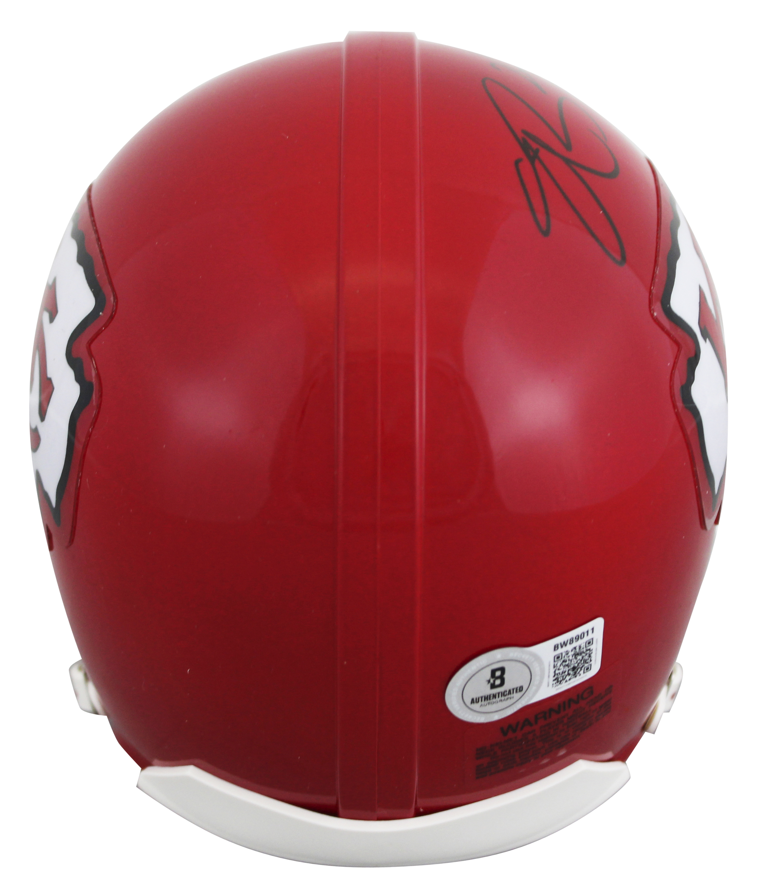 This Autographed VSR4 Mini Helmet has been Personally Signed by Eric Berry of the Kansas City Chiefs. This item is 100% Authentic to include a Certificate of Authenticity (COA) / hologram by Beckett Authentication Services. This is a BAS Witnessed Protection Program item which means a Beckett Authentication Service representative was present when this item was being signed. The authenticity can be verified on Beckett Authentication Services website. There is a large scratch on the mini helmet near the Beckett Authentication sticker. Please refer to pictures for item's condition prior to purchase. This mini helmet will not come with its Riddell plastic clamshell.