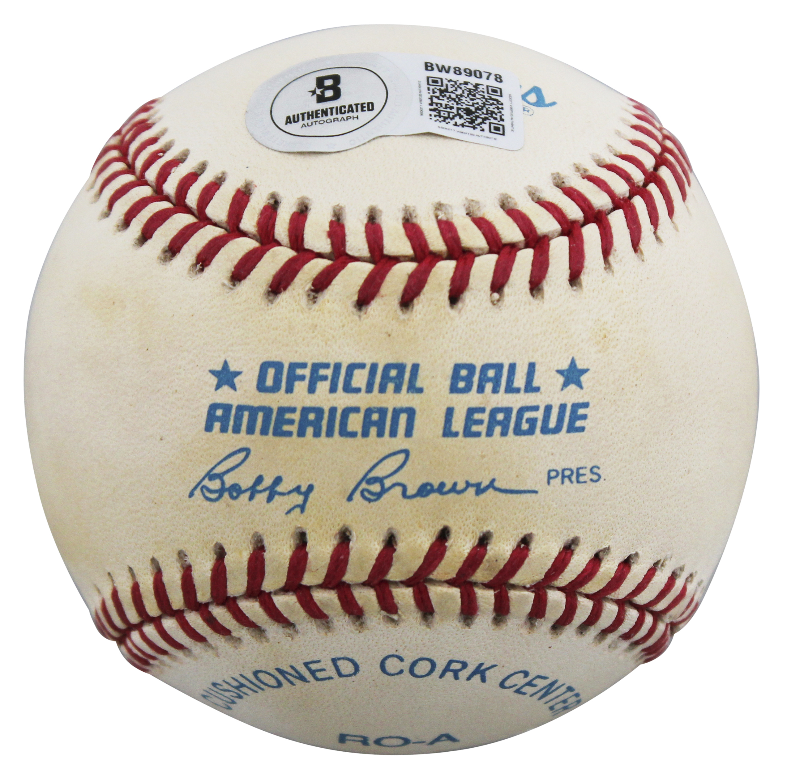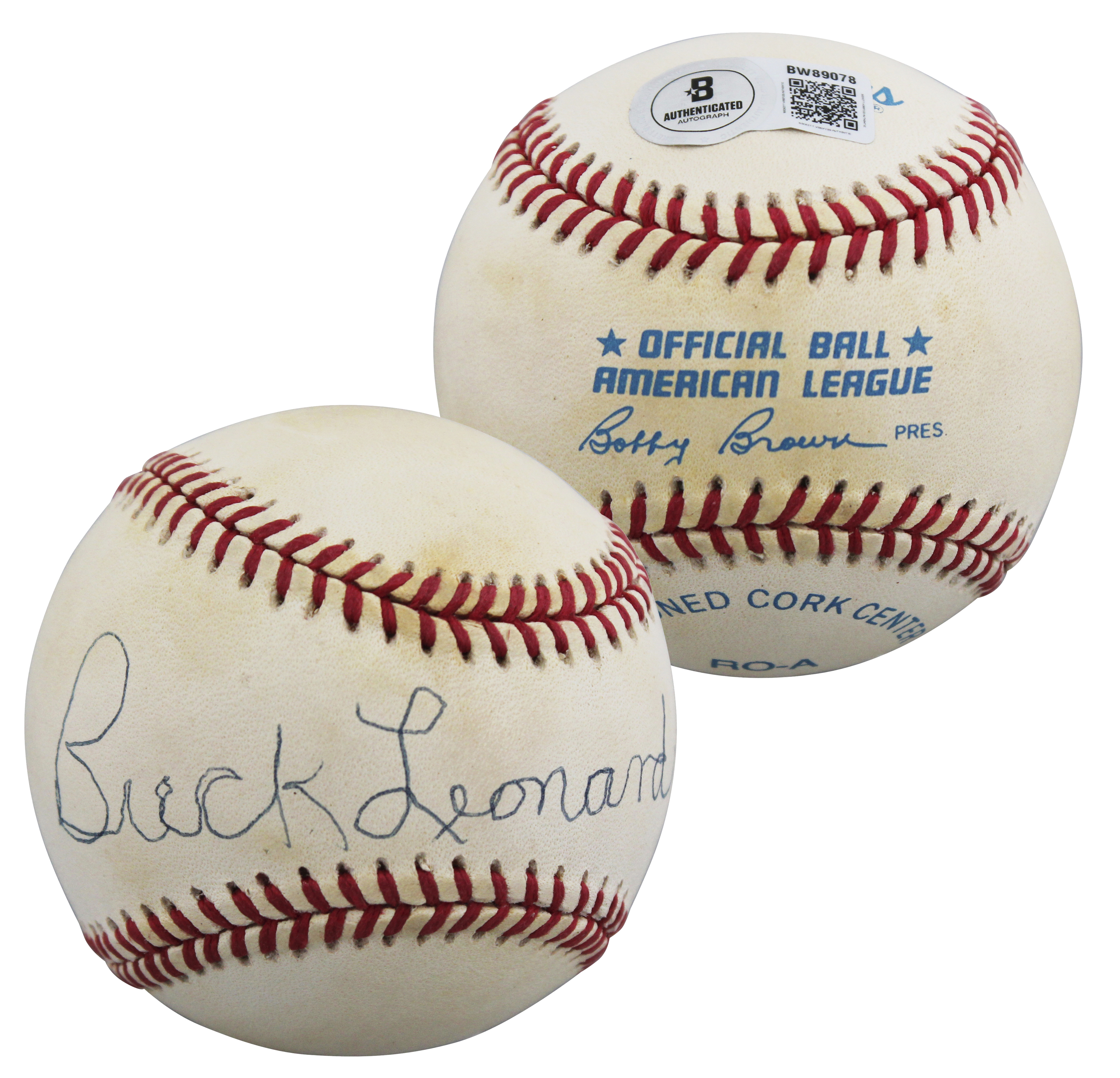 This Autographed Bobby Brown Baseball has been Personally Signed by Buck Leonard. This item is 100% Authentic to include a hologram by Beckett Authentication Services. This item will come with an affixed Beckett Authentication Services (BAS) authentication sticker, which includes a scannable QR code to verify authenticity. Please note that Beckett no longer provides serial-numbered COA cards, and the attached BAS sticker will serve as the complete authentication for this item. The authenticity can be verified on Beckett Authentication Services website. This baseball has some toning due to age. Please refer to pictures for item's condition prior to purchase.