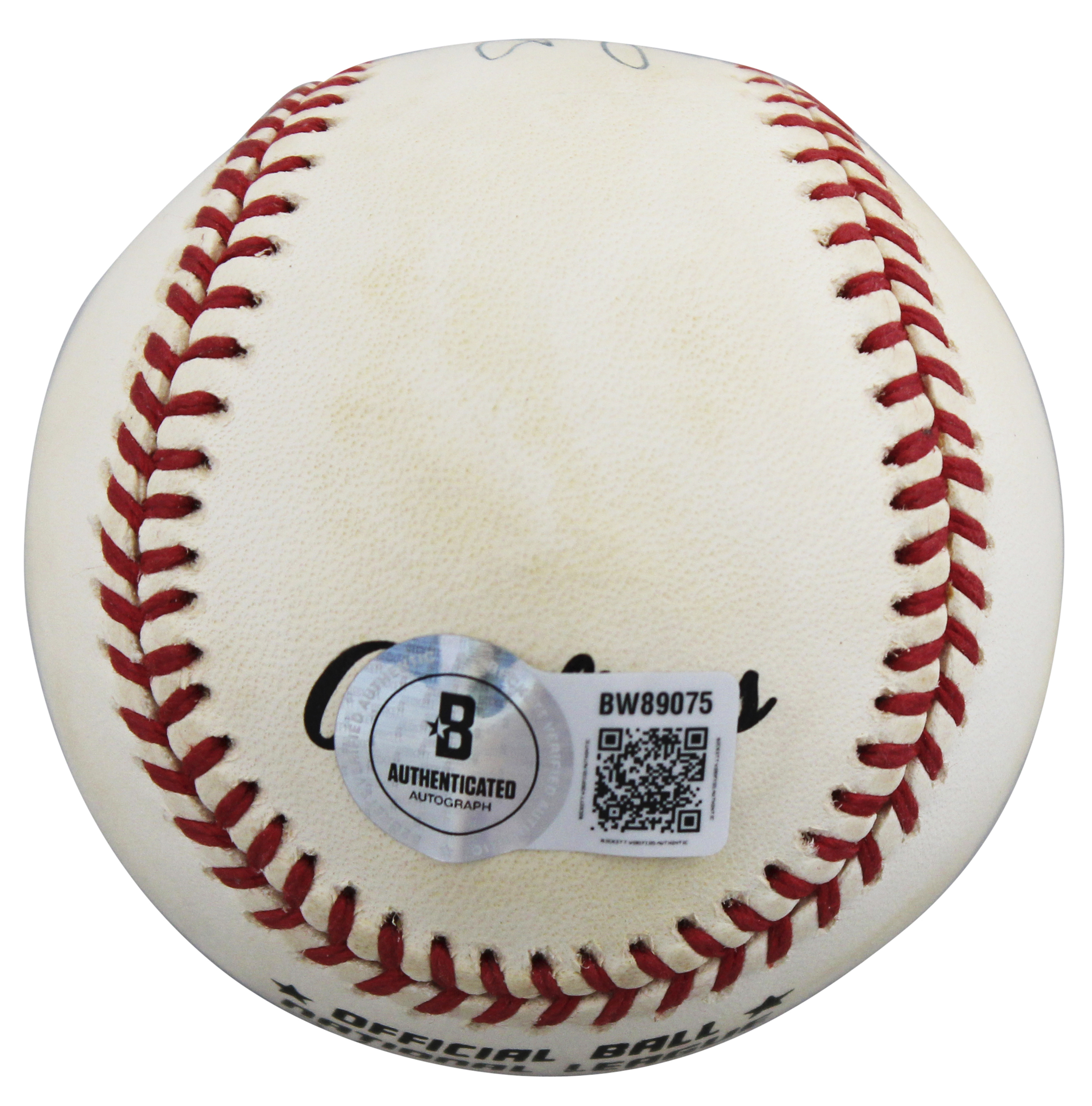 This Autographed William White Baseball has been Personally Signed by Stan Musial of the St. Louis Cardinals. This item is 100% Authentic to include a hologram by Beckett Authentication Services. This item will come with an affixed Beckett Authentication Services (BAS) authentication sticker, which includes a scannable QR code to verify authenticity. Please note that Beckett no longer provides serial-numbered COA cards, and the attached BAS sticker will serve as the complete authentication for this item. The authenticity can be verified on Beckett Authentication Services website. This baseball has some toning due to age. Please refer to pictures for item's condition prior to purchase.