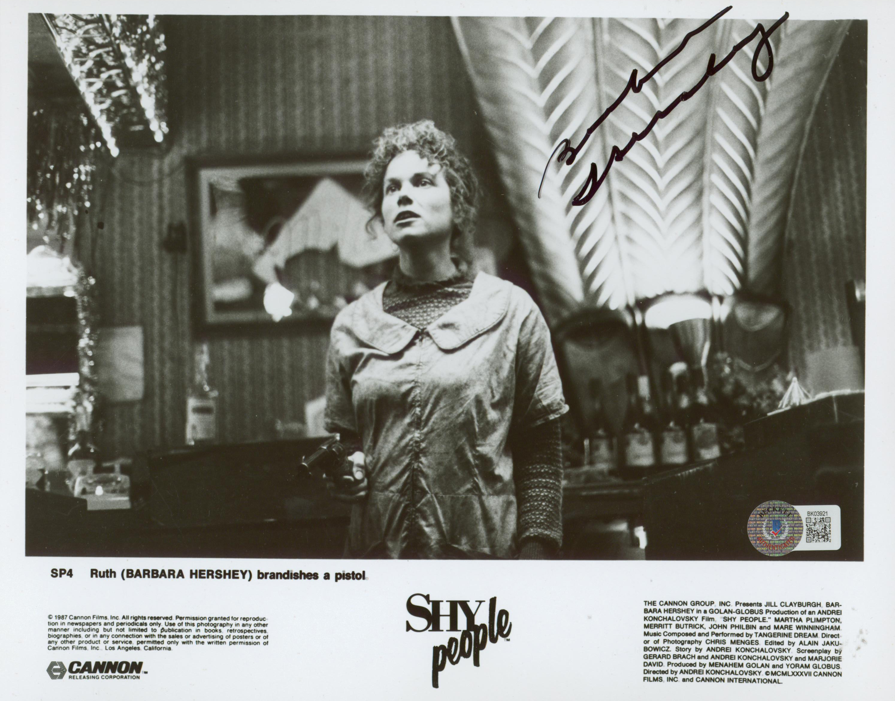 This Autographed 8x10 Photo has been Personally Signed by Barbara Hershey of Shy People. This item is 100% Authentic to include a hologram by Beckett Authentication Services. This item will come with an affixed Beckett Authentication Services (BAS) authentication sticker, which includes a scannable QR code to verify authenticity. Please note that Beckett no longer provides serial-numbered COA cards, and the attached BAS sticker will serve as the complete authentication for this item. The authenticity can be verified on Beckett Authentication Services website.