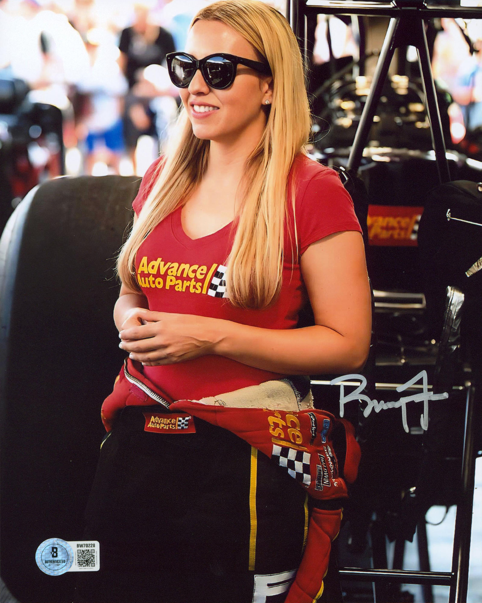This Autographed Vertical 8x10 Photo has been Personally Signed by Brittany Force. This item is 100% Authentic to include a hologram by Beckett Authentication Services. This item will come with an affixed Beckett Authentication Services (BAS) authentication sticker, which includes a scannable QR code to verify authenticity. Please note that Beckett no longer provides serial-numbered COA cards, and the attached BAS sticker will serve as the complete authentication for this item. We have multiples of this same item. While the photographs are representative of this item, the size, placement and strength of the signature may vary. Each item is hand signed, therefore, each autograph is unique.