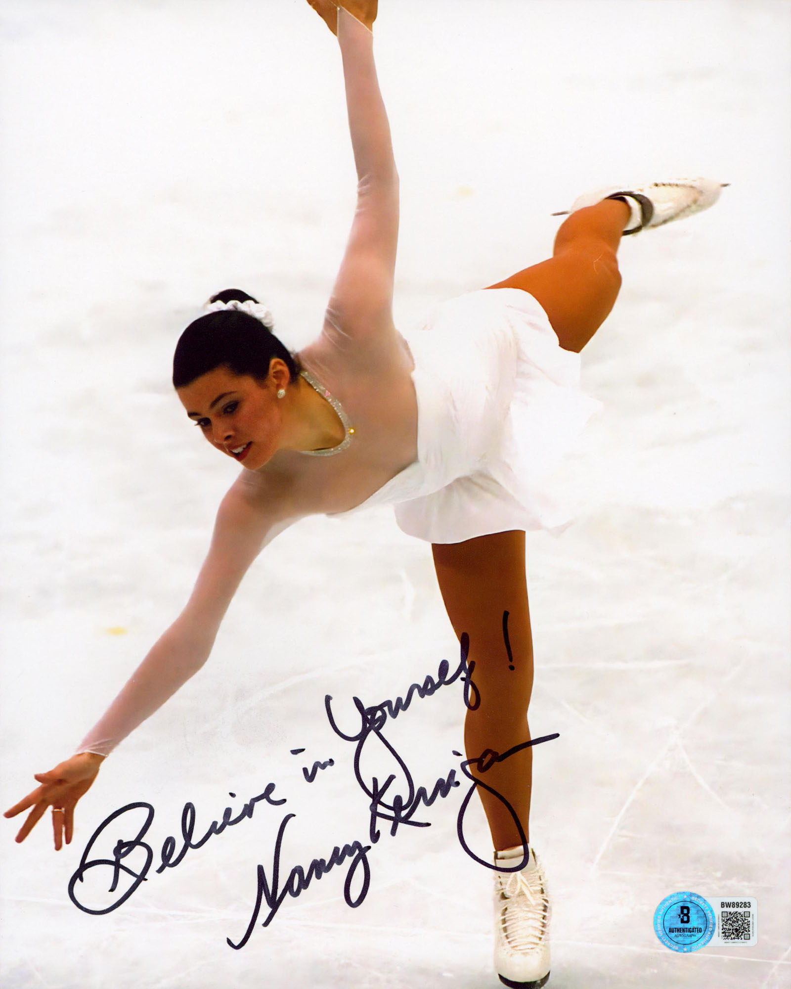 This Autographed Vertical 8x10 Photo with the inscription of "Believe In Yourself!" has been Personally Signed by Nancy Kerrigan. This item is 100% Authentic to include a hologram by Beckett Authentication Services. This item will come with an affixed Beckett Authentication Services (BAS) authentication sticker, which includes a scannable QR code to verify authenticity. Please note that Beckett no longer provides serial-numbered COA cards, and the attached BAS sticker will serve as the complete authentication for this item. We have multiples of this same item. While the photographs are representative of this item, the size, placement and strength of the signature may vary. Each item is hand signed, therefore, each autograph is unique.