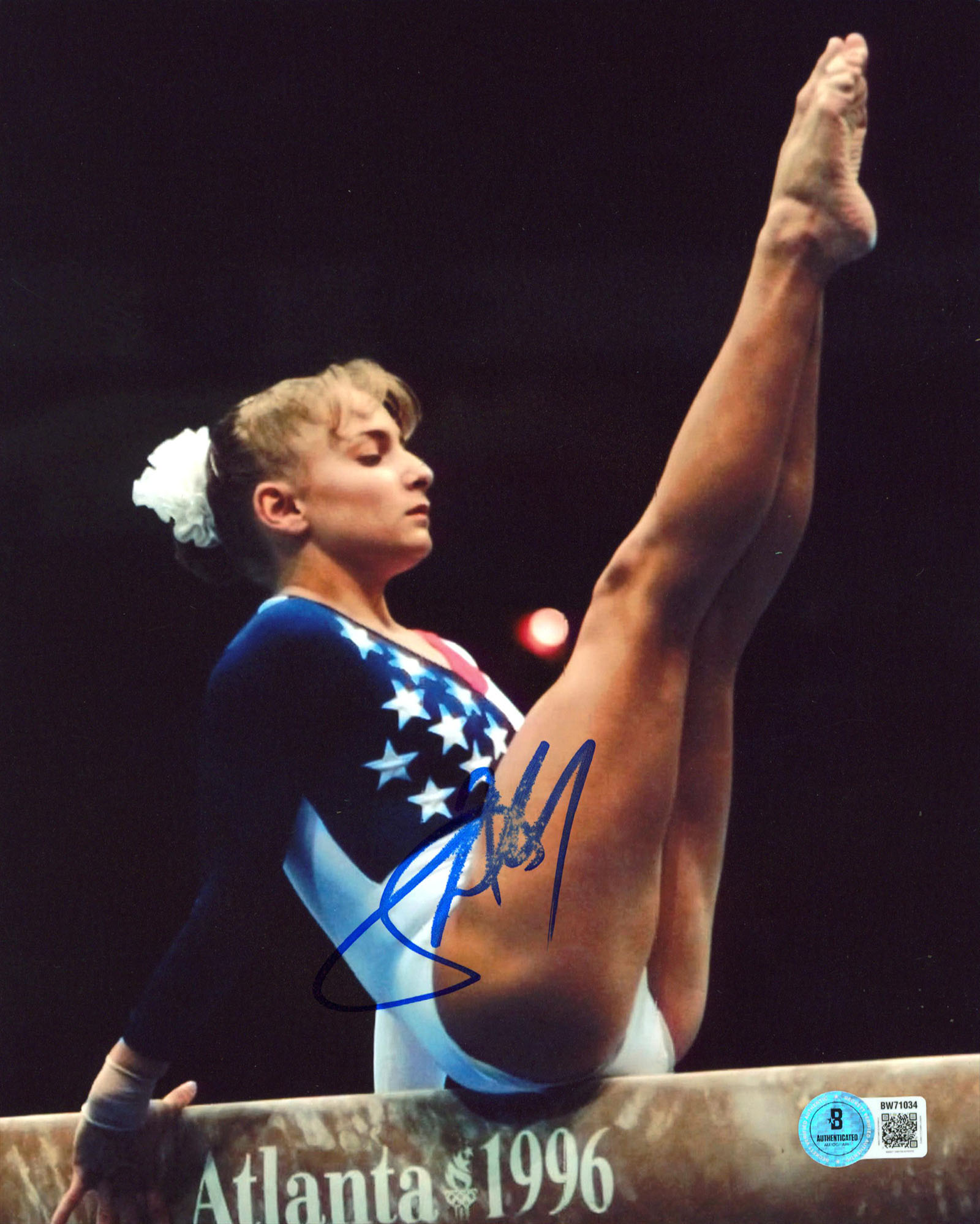This Autographed Team USA Vertical 8x10 Photo has been Personally Signed by Shannon Miller. This item is 100% Authentic to include a hologram by Beckett Authentication Services. This item will come with an affixed Beckett Authentication Services (BAS) authentication sticker, which includes a scannable QR code to verify authenticity. Please note that Beckett no longer provides serial-numbered COA cards, and the attached BAS sticker will serve as the complete authentication for this item. The authenticity can be verified on Beckett Authentication Services website. This photo has a slightly spotty signature.