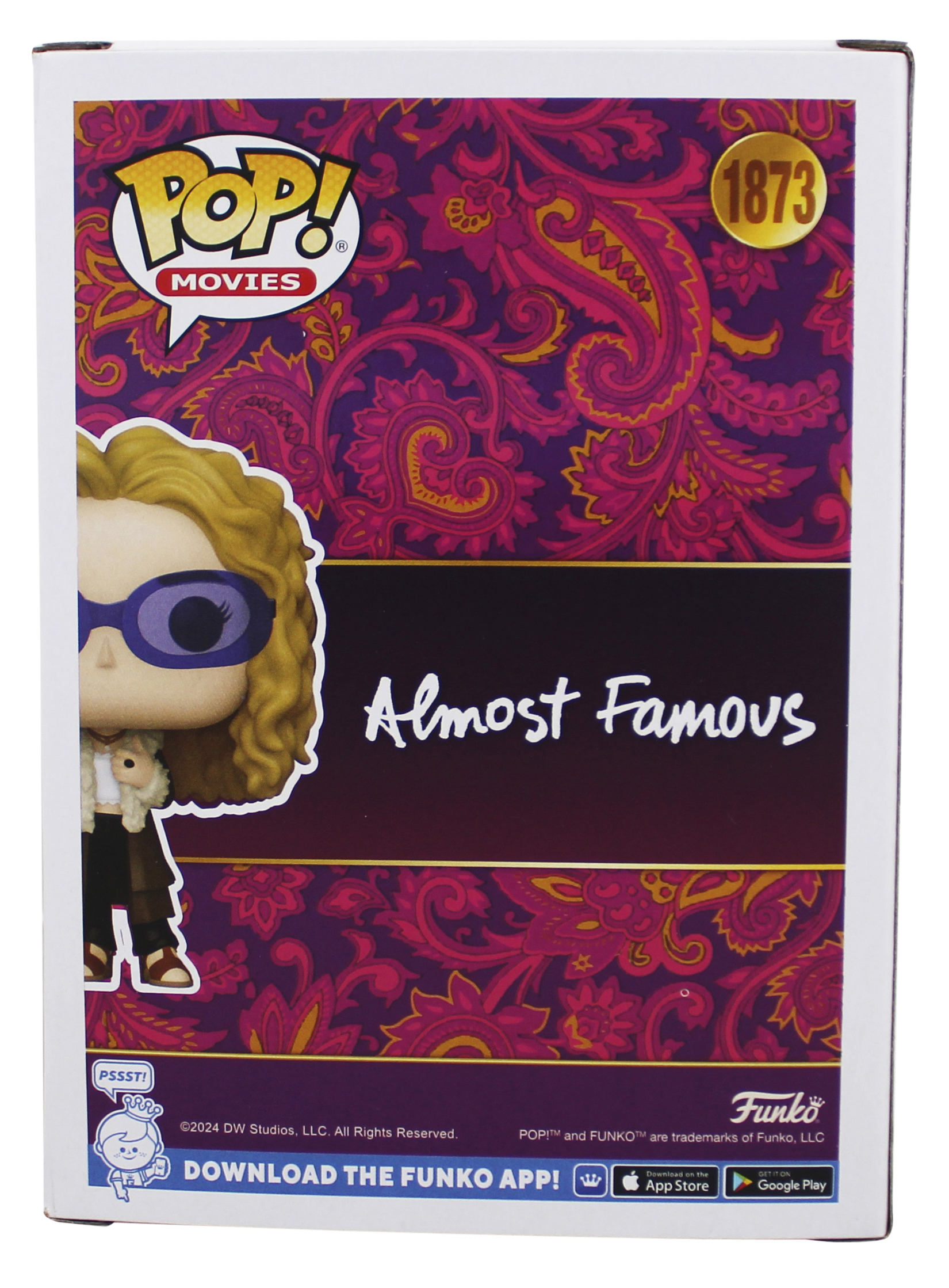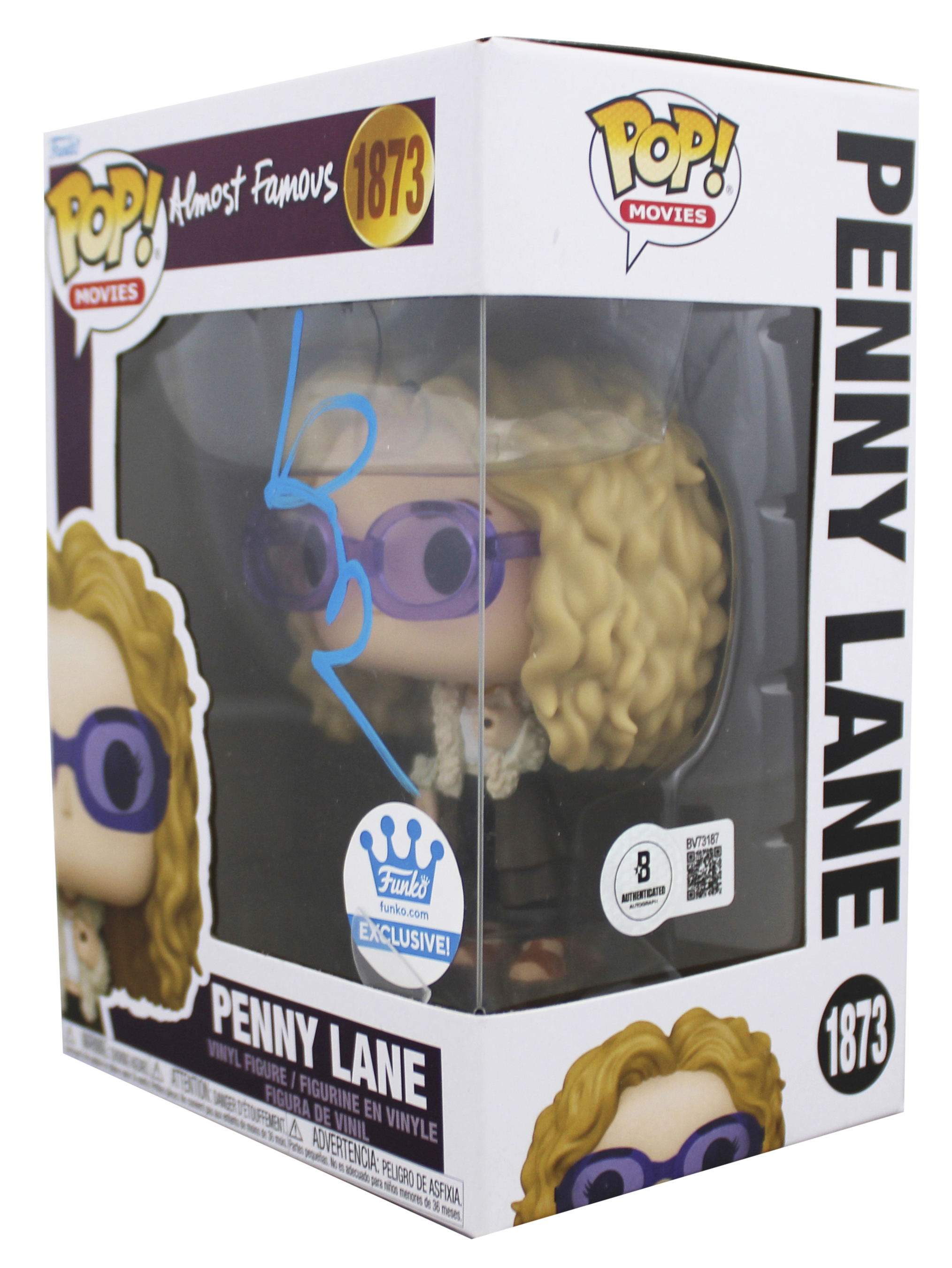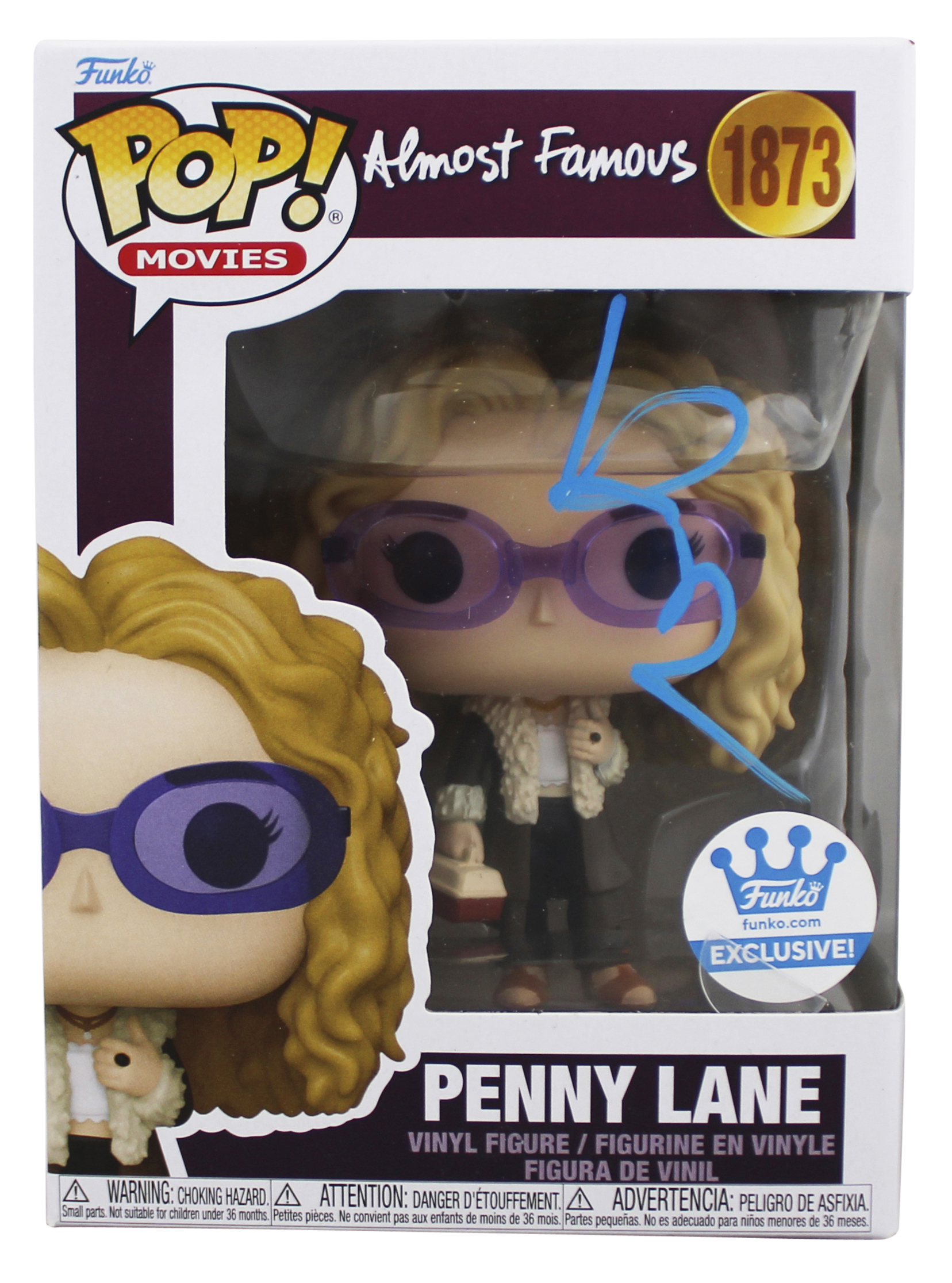 This Autographed Penny Lane #1873 Funko Pop Vinyl Figure has been Personally Signed by Kate Hudson of Almost Famous. This item is 100% Authentic to include a hologram by Beckett Authentication Services. This item will come with an affixed Beckett Authentication Services (BAS) authentication sticker, which includes a scannable QR code to verify authenticity. Please note that Beckett no longer provides serial-numbered COA cards, and the attached BAS sticker will serve as the complete authentication for this item. The authenticity can be verified on Beckett Authentication Services website. This will be shipped in a Pop Protector, each will have some handling wear from shipment to the signing and back. These would not be considered mint.