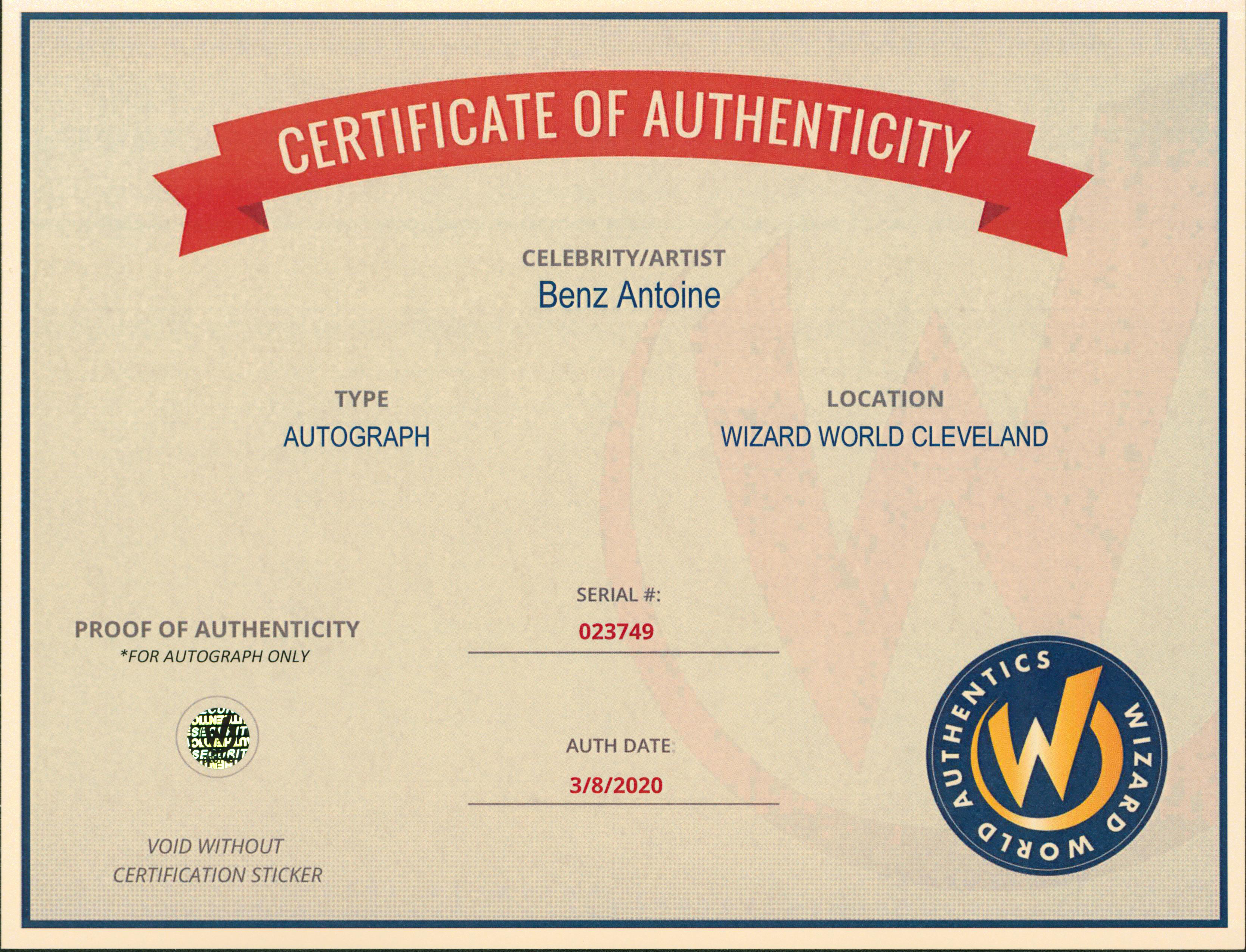 This Autographed 8x10 Photo with the inscription of "I Recommend Not Dying! 'Baps'" has been Personally Signed by Benz Antoine of Overwatch. This item is 100% Authentic to include a Certificate of Authenticity (COA) / hologram by Wizard World Authentics. A Wizard World Authentics representative was present when this item was being signed, the date of the signing is notated on the COA. The authenticity can be verified on Wizard World Authentics website.