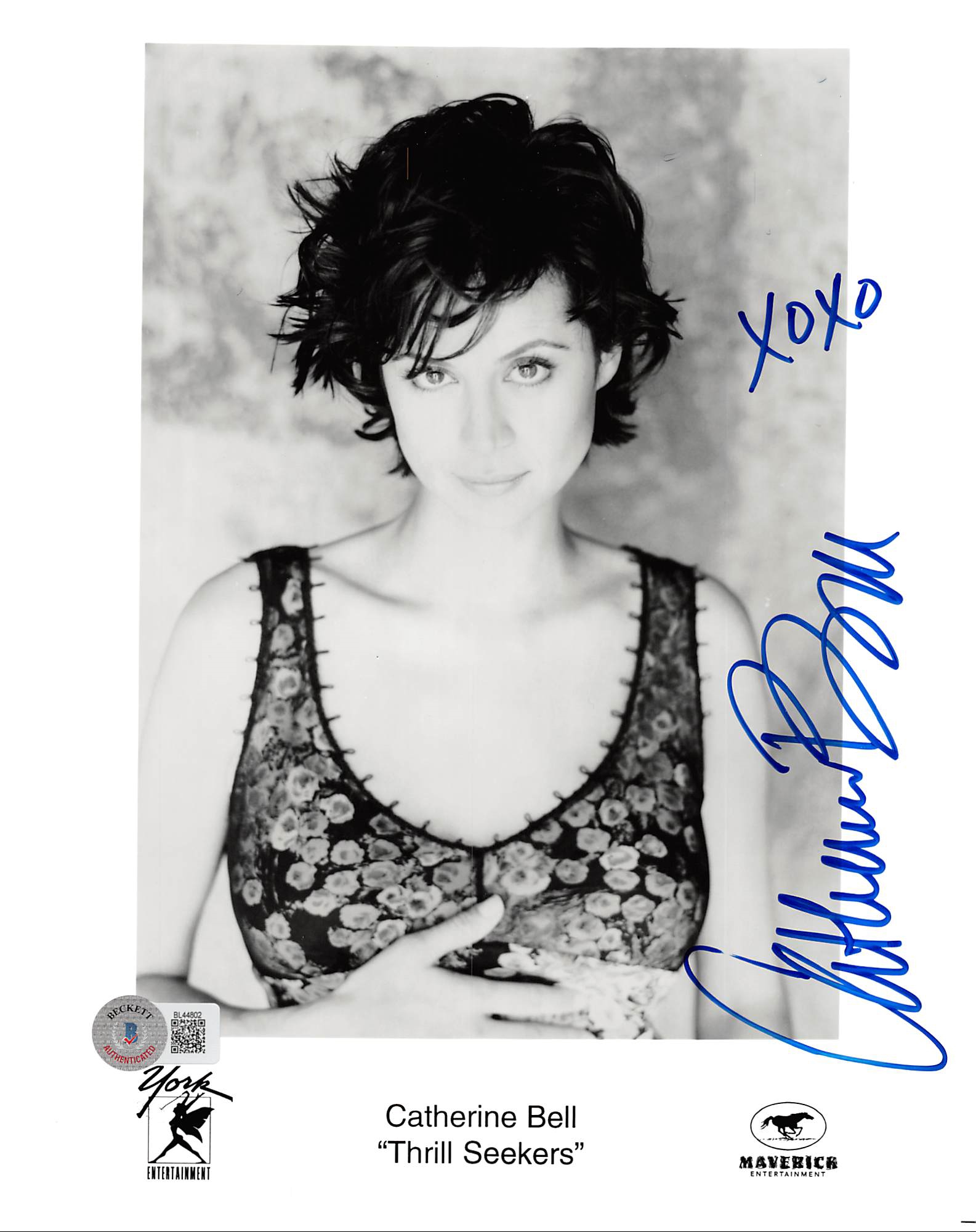 This Autographed 8x10 Photo with the inscription of "XOXO" has been Personally Signed by Catherine Bell of Thrill Seekers. This item is 100% Authentic to include a hologram by Beckett Authentication Services. This item will come with an affixed Beckett Authentication Services (BAS) authentication sticker, which includes a scannable QR code to verify authenticity. Please note that Beckett no longer provides serial-numbered COA cards, and the attached BAS sticker will serve as the complete authentication for this item. The authenticity can be verified on Beckett Authentication Services website.