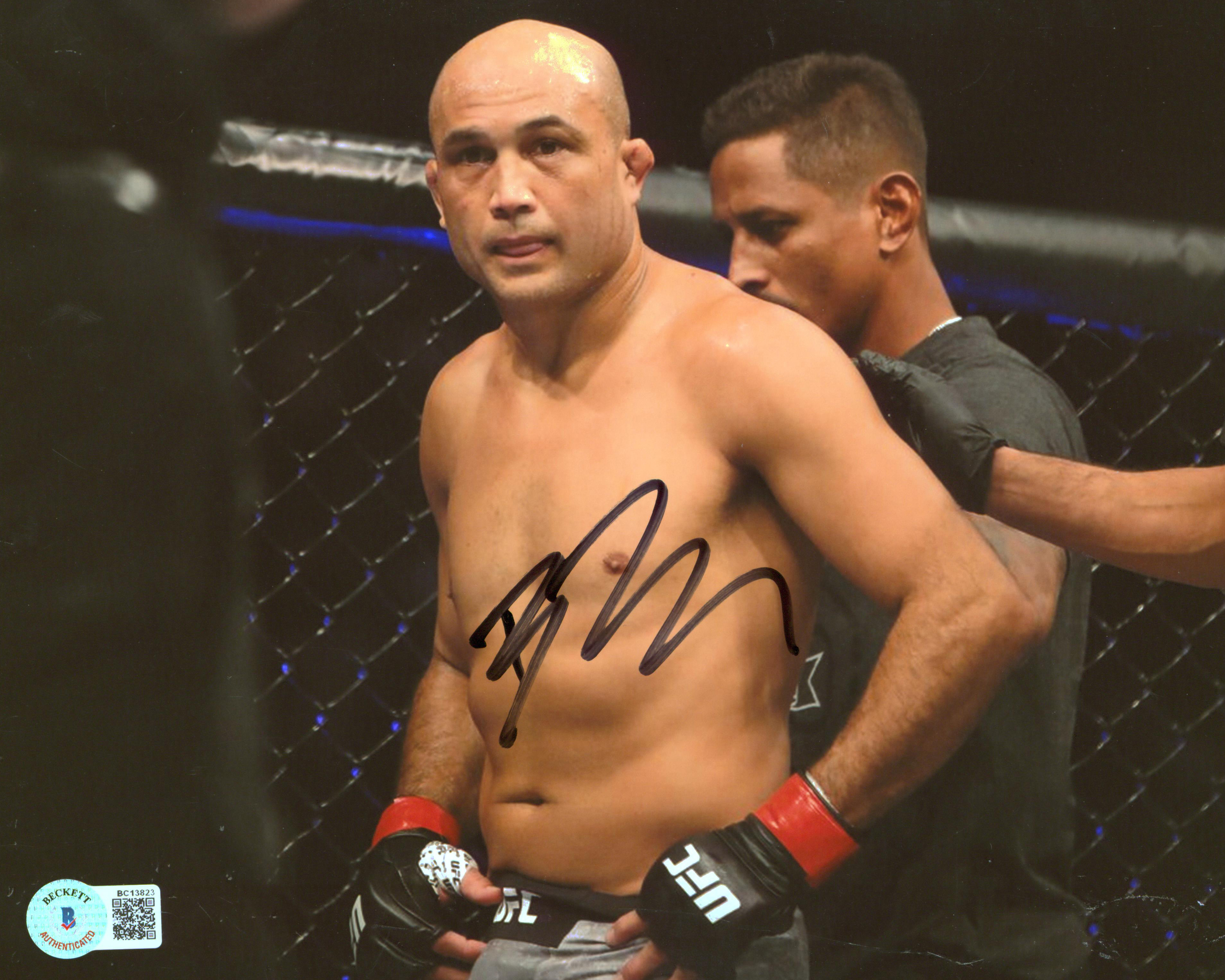 This Autographed 8x10 Photo has been Personally Signed by B.J. Penn of the Ultimate Fighting Championship. This item is 100% Authentic to include a Certificate of Authenticity (COA) / hologram by Beckett Authentication Services. The authenticity can be verified on Beckett Authentication Services website.