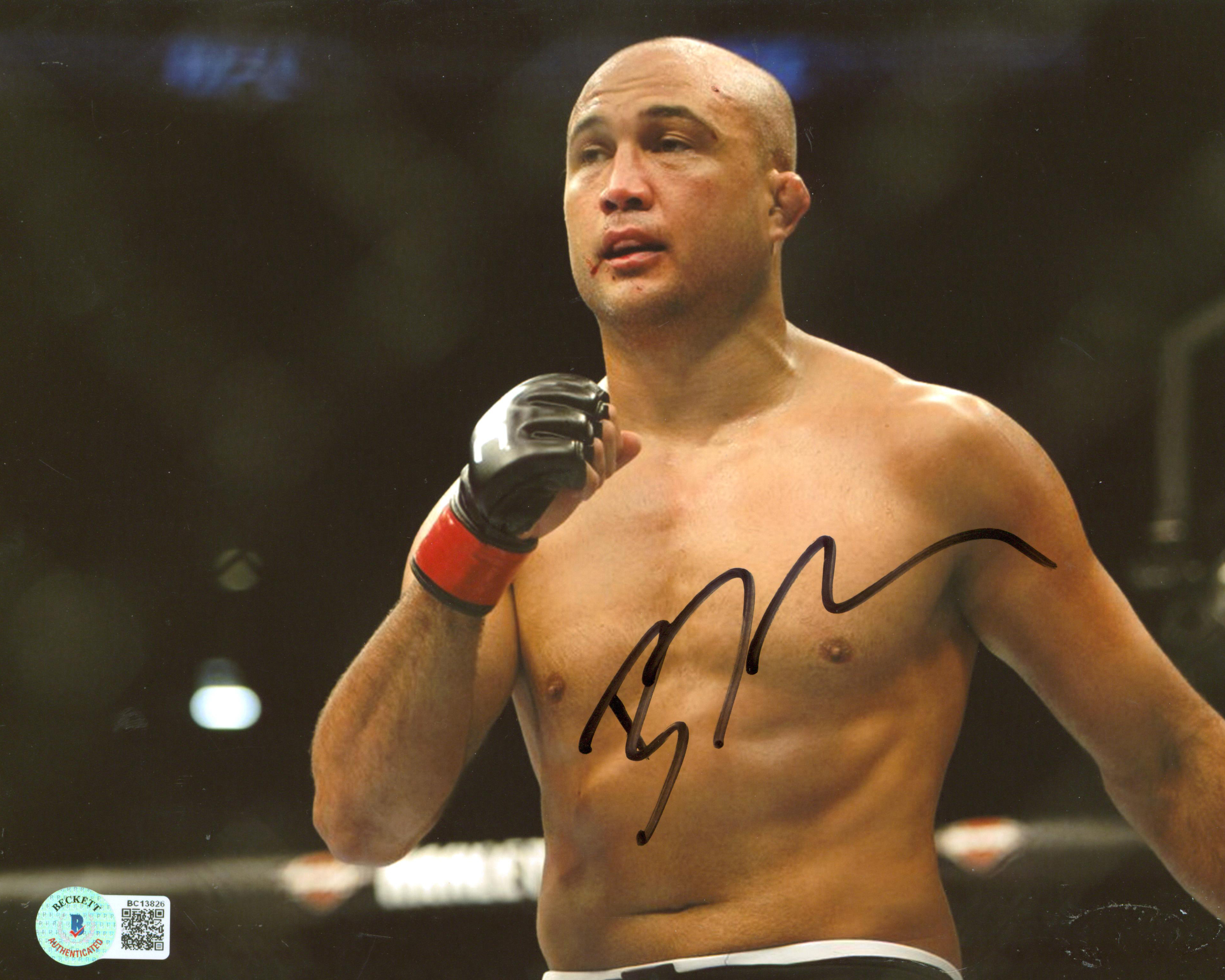 This Autographed 8x10 Photo has been Personally Signed by B.J. Penn of the Ultimate Fighting Championship. This item is 100% Authentic to include a Certificate of Authenticity (COA) / hologram by Beckett Authentication Services. The authenticity can be verified on Beckett Authentication Services website.