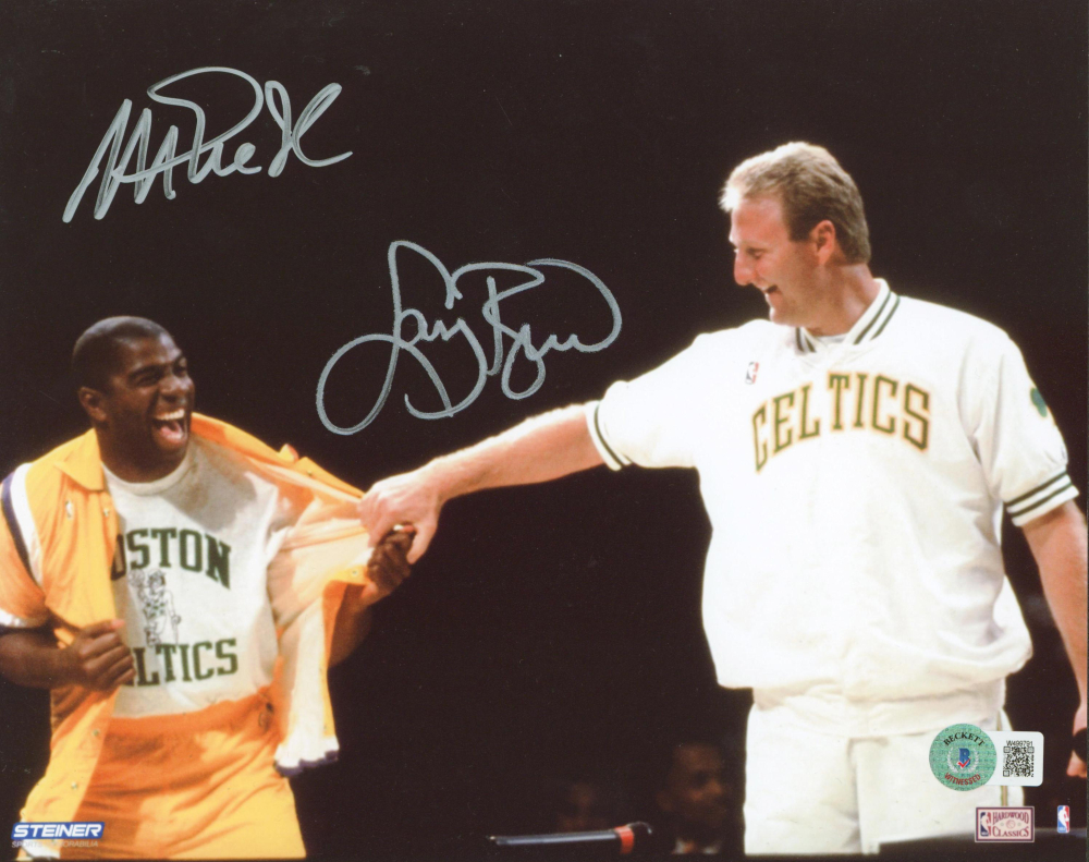 This Autographed 8x10 Photo has been Personally Signed by Magic Johnson & Larry Bird. The authenticity can be verified on website.