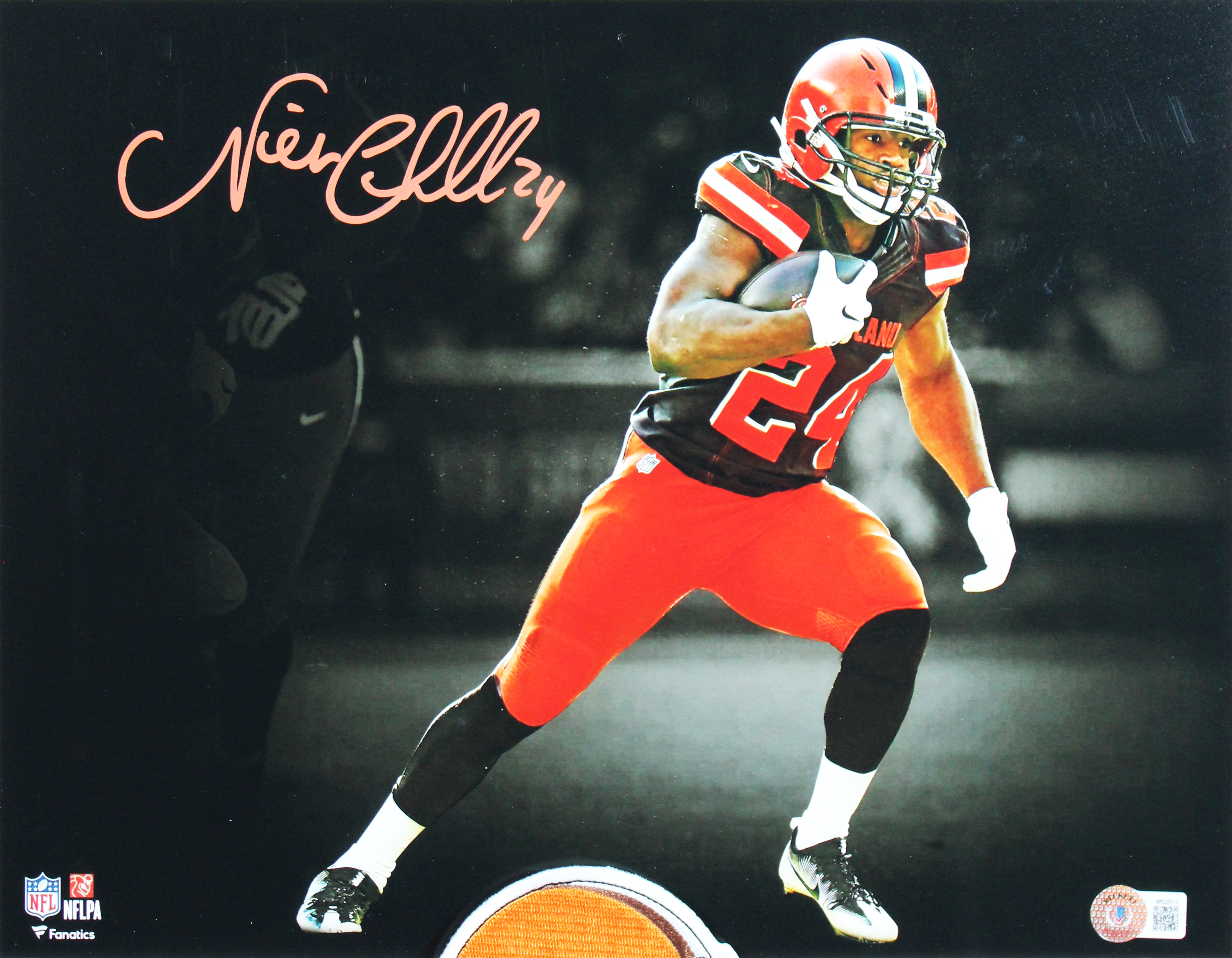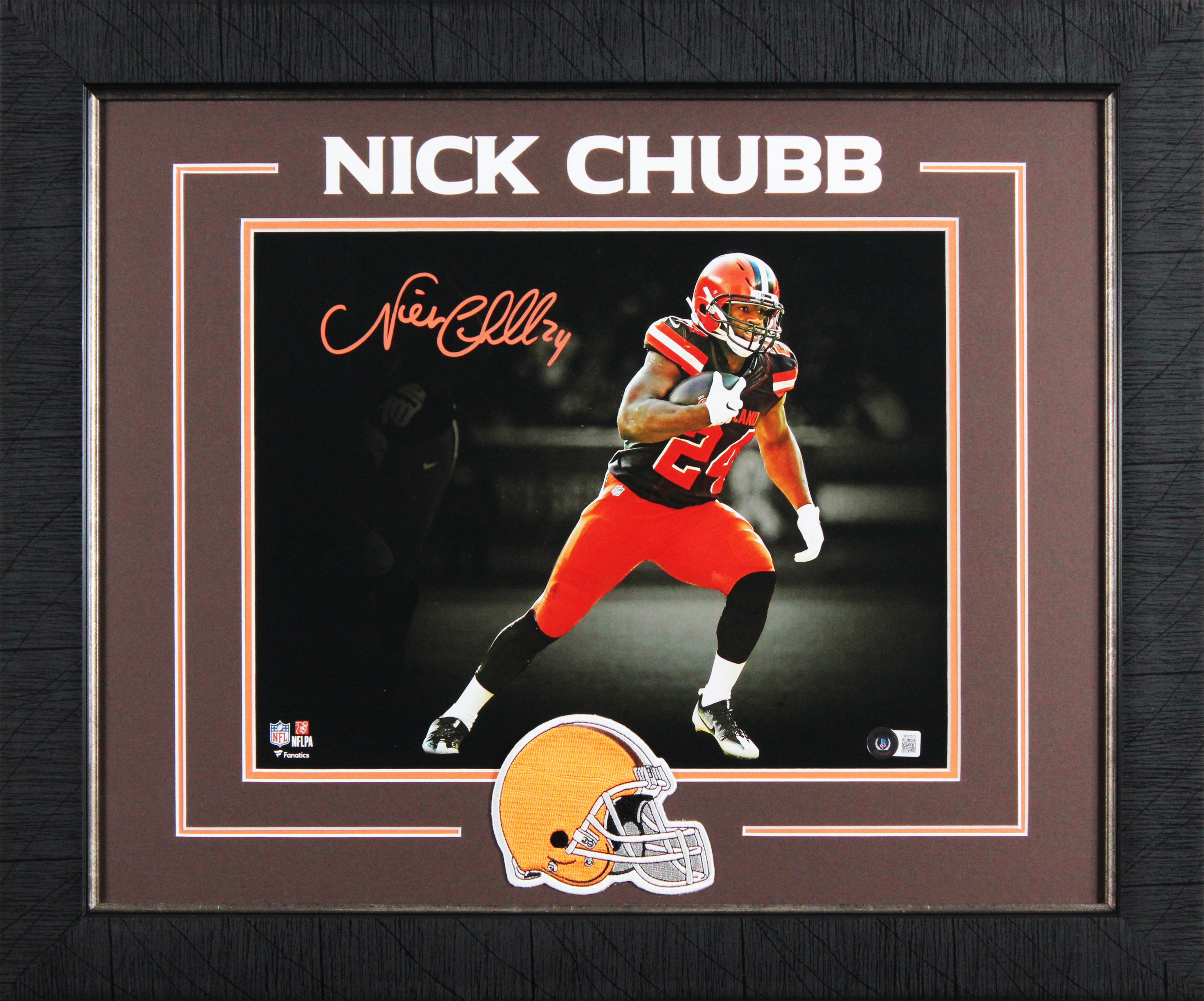 This Autographed Horizontal Spotlight 11x14 Framed Photo has been Personally Signed by Nick Chubb of the Cleveland Browns. This item is 100% Authentic to include a hologram by Beckett Authentication Services. This item will come with an affixed Beckett Authentication Services (BAS) authentication sticker, which includes a scannable QR code to verify authenticity. Please note that Beckett no longer provides serial-numbered COA cards, and the attached BAS sticker will serve as the complete authentication for this item. This is a BAS Witnessed Protection Program item which means a Beckett Authentication Service representative was present when this item was being signed. We conducted an autograph signing with Nick Chubb where multiples of the same item were signed. While the photographs are representative of this item, the size, placement and strength of the signature may vary. Each item is hand signed, therefore, each autograph is unique. This item can be verified through BAS Witnessed. This item has been professionally framed to overall dimensions of approximately 19.5 x 23.5 inches. This photo will be framed to order, and will take 3-4 additional business days to process.