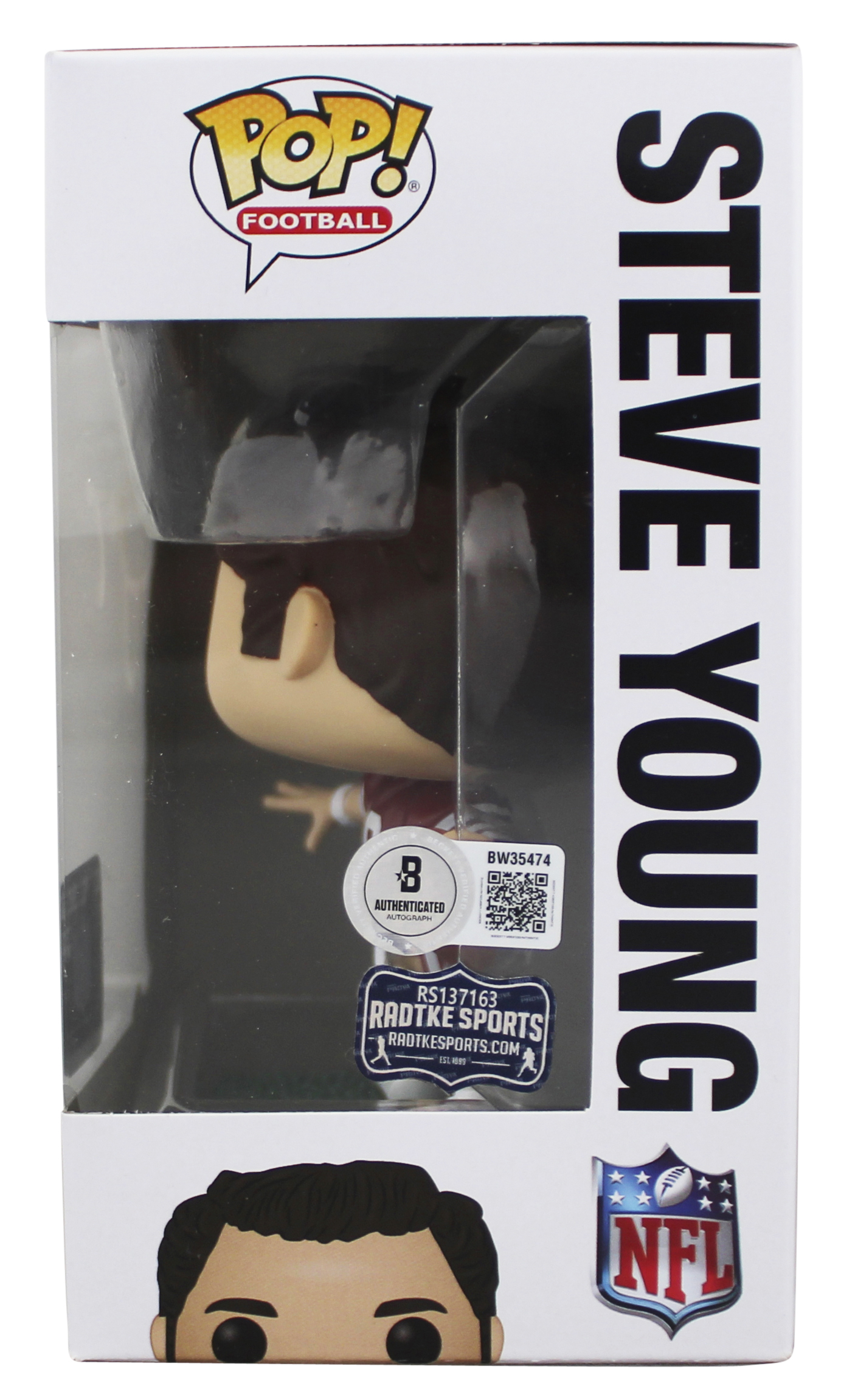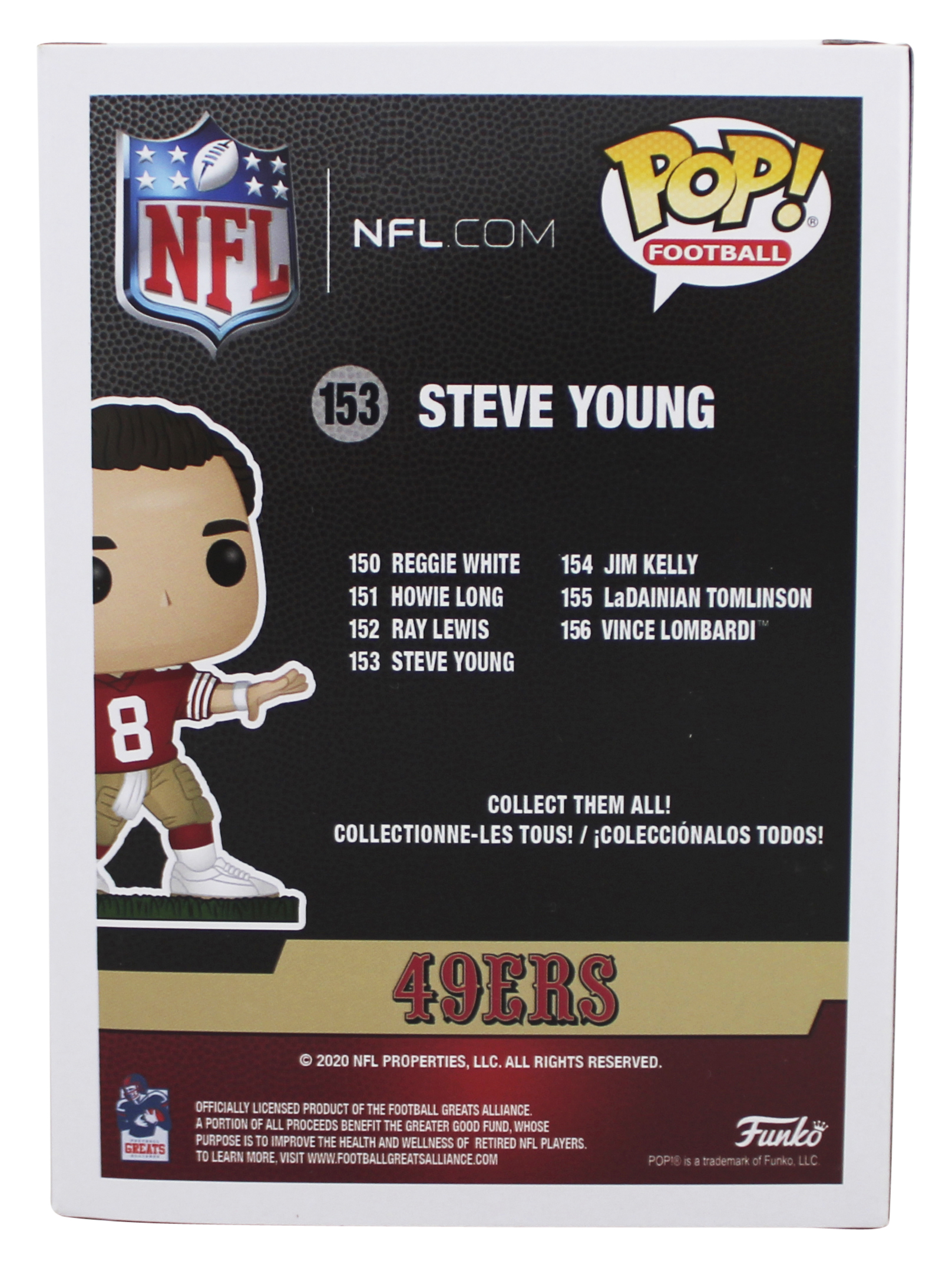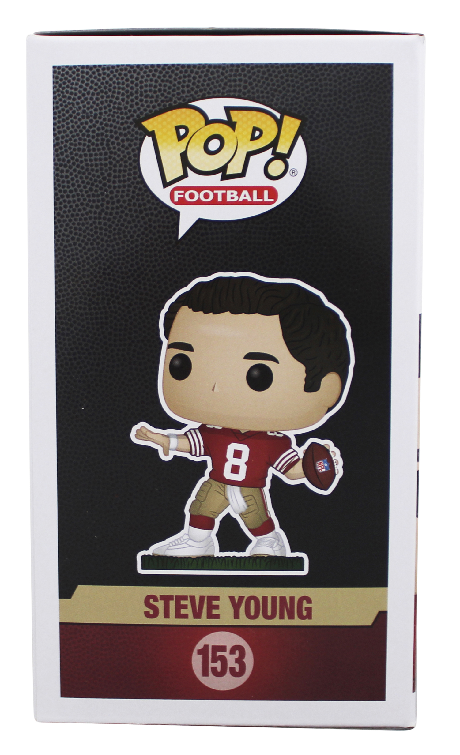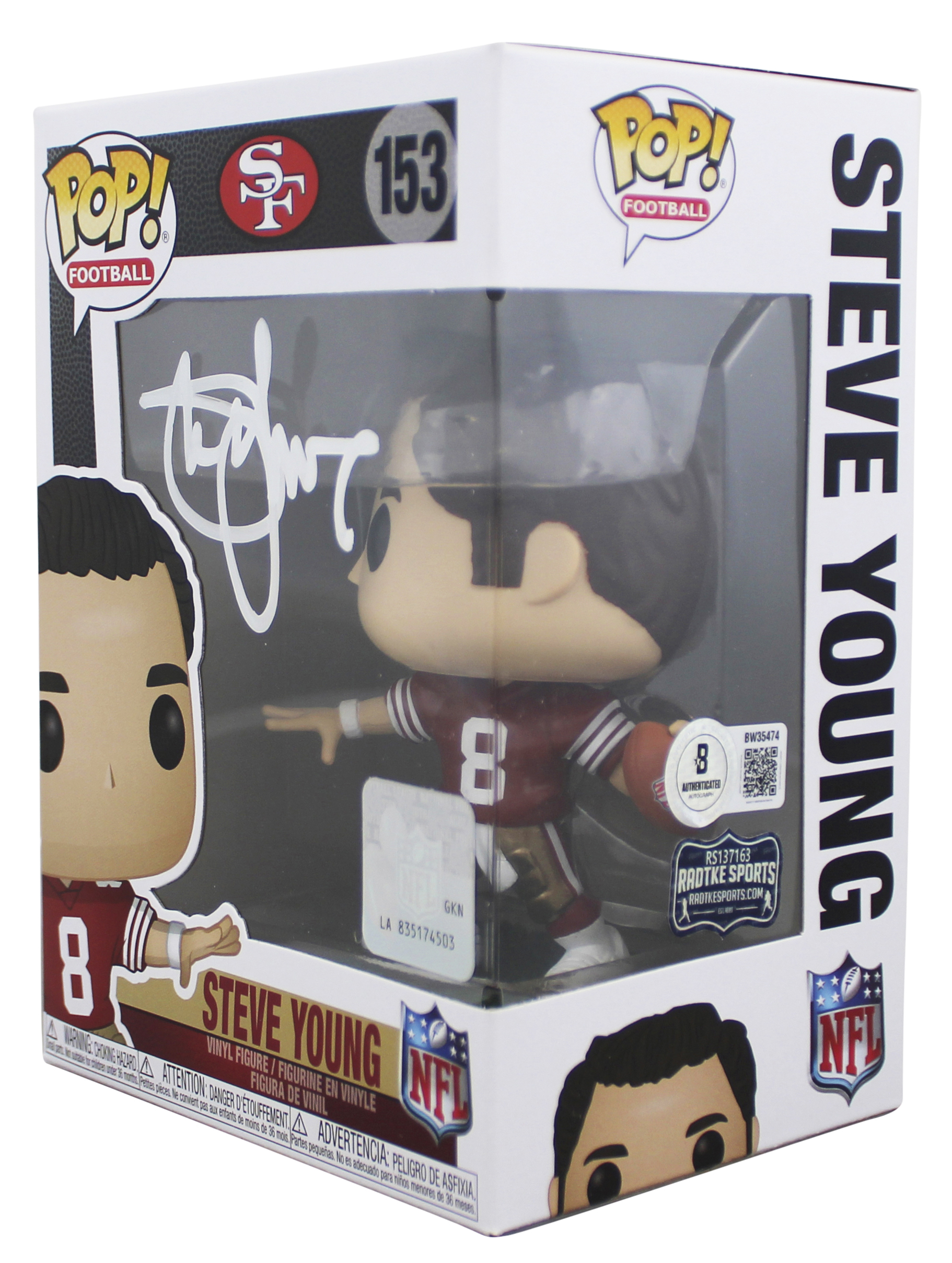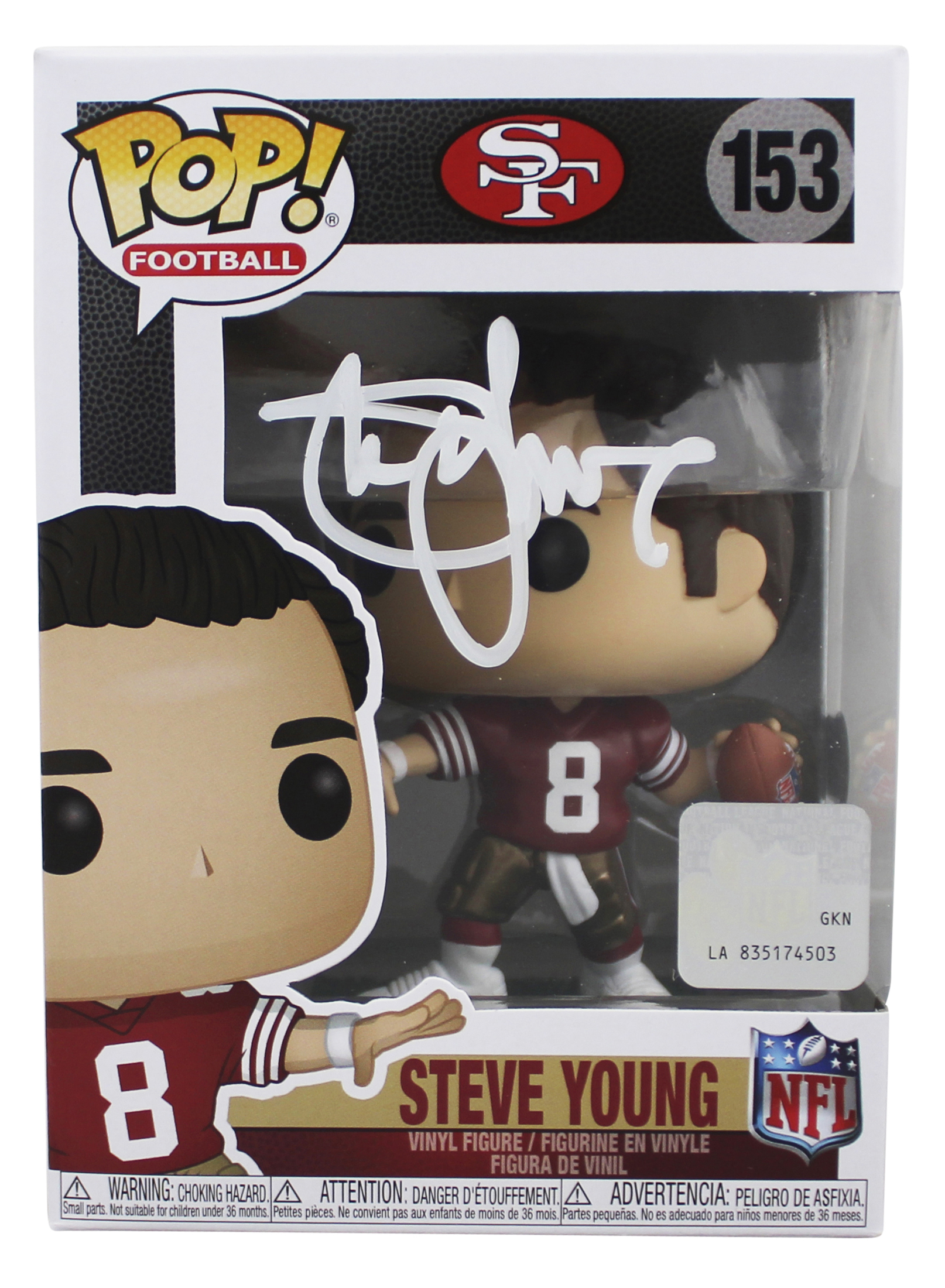 This Autographed Steve Young #153 Funko Pop Vinyl Figure has been Personally Signed by Steve Young of the San Francisco 49ers. This item is 100% Authentic to include a hologram by Beckett Authentication Services. This item will come with an affixed Beckett Authentication Services (BAS) authentication sticker, which includes a scannable QR code to verify authenticity. Please note that Beckett no longer provides serial-numbered COA cards, and the attached BAS sticker will serve as the complete authentication for this item. The authenticity can be verified on Beckett Authentication Services website. This item will ship in a Pop! Protector, please refer to the photos for condition of the item prior to purchase, these are in good condition but would not be considered mint.