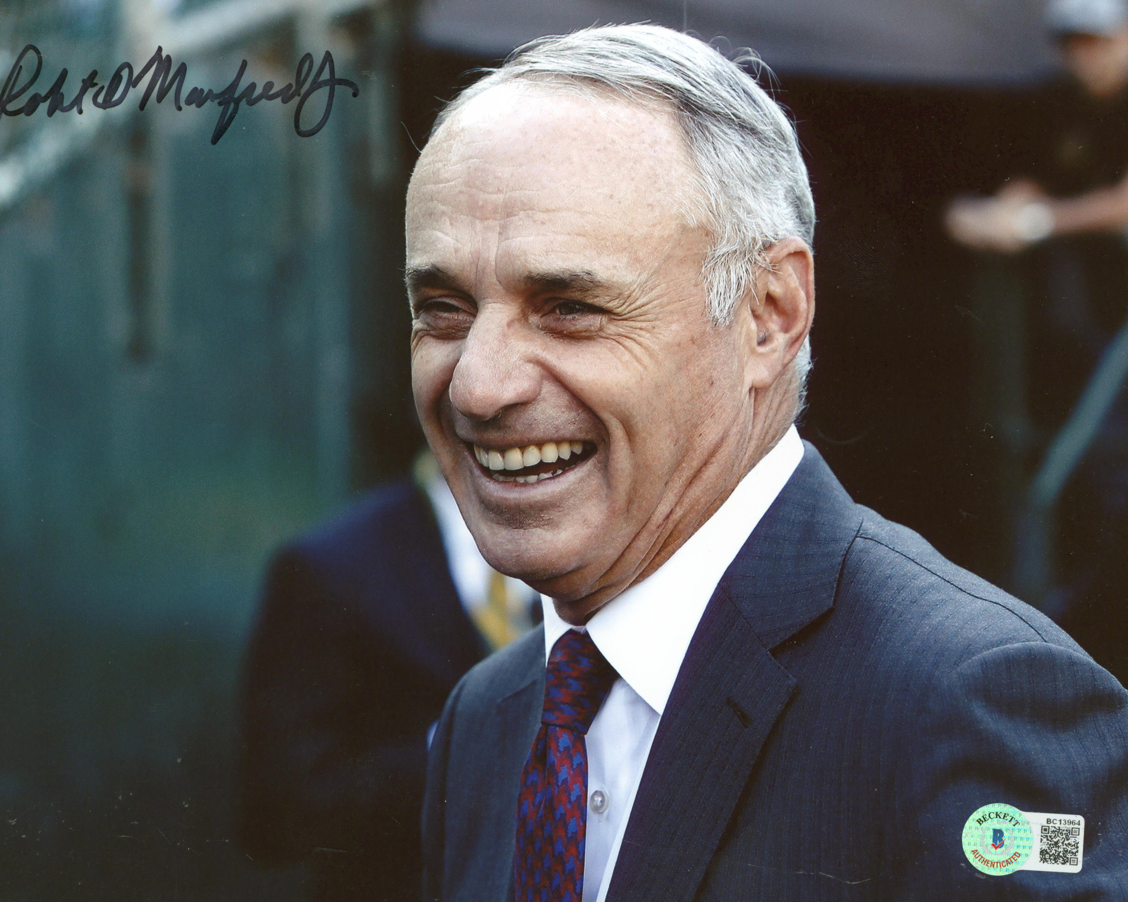 This Autographed 8x10 Photo has been Personally Signed by Robert Manfred Jr.. This item is 100% Authentic to include a hologram by Beckett Authentication Services. This item will come with an affixed Beckett Authentication Services (BAS) authentication sticker, which includes a scannable QR code to verify authenticity. Please note that Beckett no longer provides serial-numbered COA cards, and the attached BAS sticker will serve as the complete authentication for this item. The authenticity can be verified on Beckett Authentication Services website.