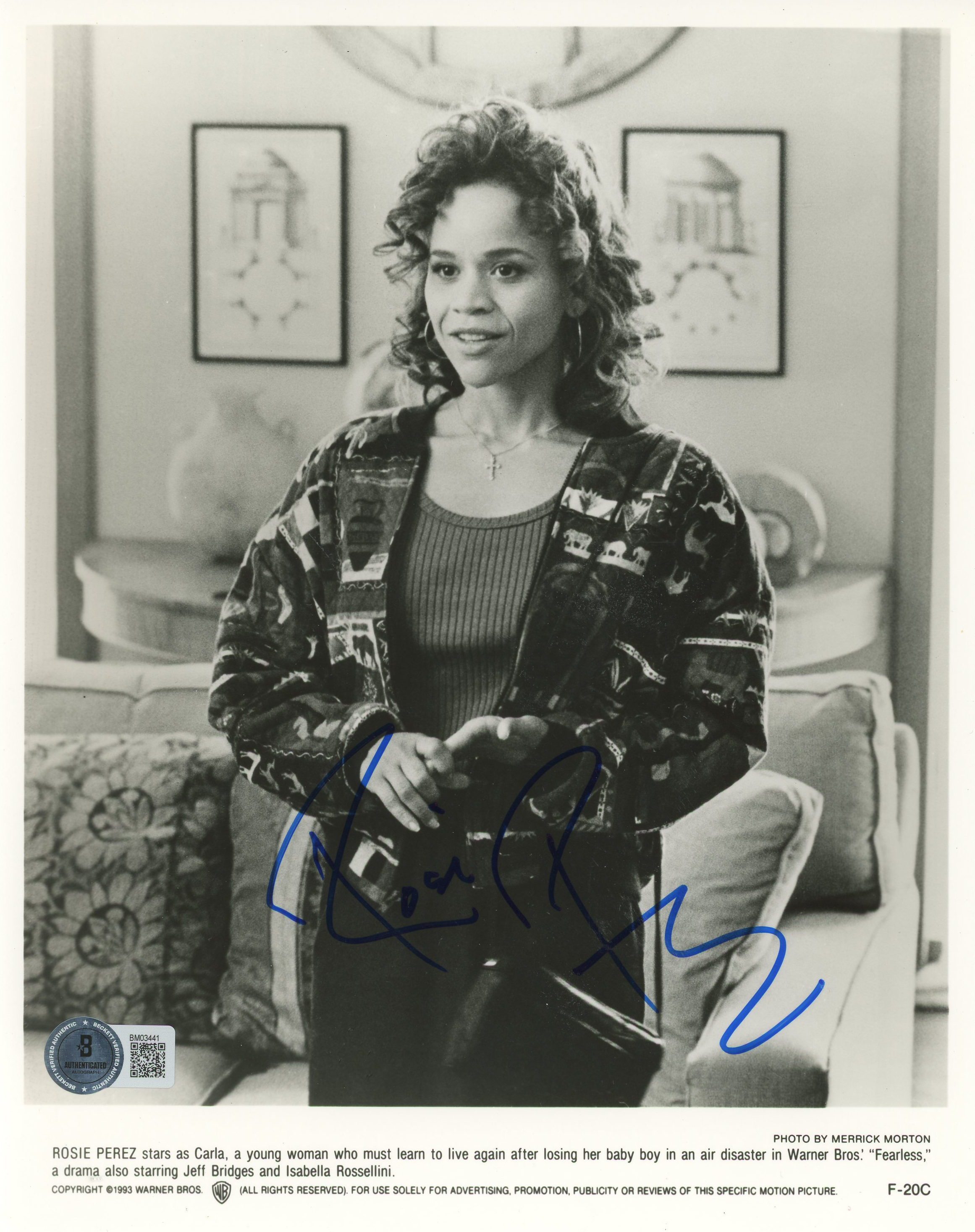 This Autographed 8x10 Photo has been Personally Signed by Rosie Perez of Fearless. This item is 100% Authentic to include a hologram by Beckett Authentication Services. This item will come with an affixed Beckett Authentication Services (BAS) authentication sticker, which includes a scannable QR code to verify authenticity. Please note that Beckett no longer provides serial-numbered COA cards, and the attached BAS sticker will serve as the complete authentication for this item. The authenticity can be verified on Beckett Authentication Services website.