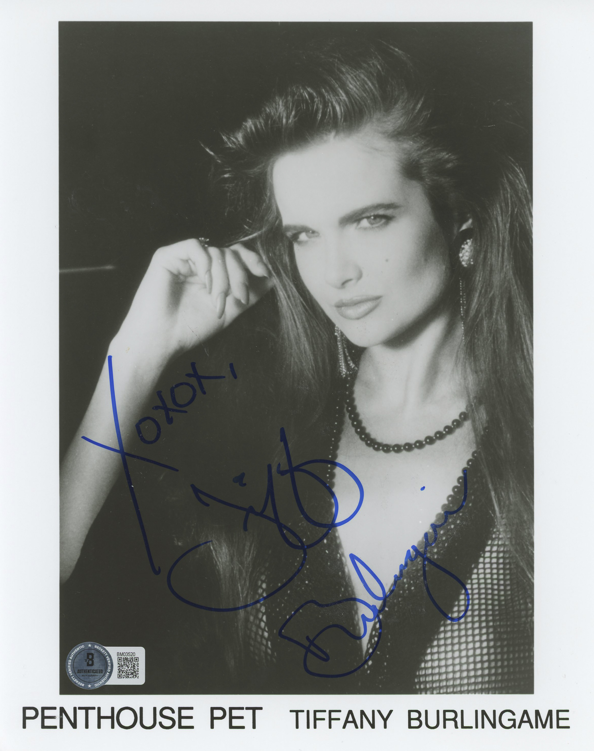This Autographed 8x10 Photo with the inscription of "XOXO" has been Personally Signed by Tiffany Burlingame of Penthouse Pet. This item is 100% Authentic to include a hologram by Beckett Authentication Services. This item will come with an affixed Beckett Authentication Services (BAS) authentication sticker, which includes a scannable QR code to verify authenticity. Please note that Beckett no longer provides serial-numbered COA cards, and the attached BAS sticker will serve as the complete authentication for this item. The authenticity can be verified on Beckett Authentication Services website.