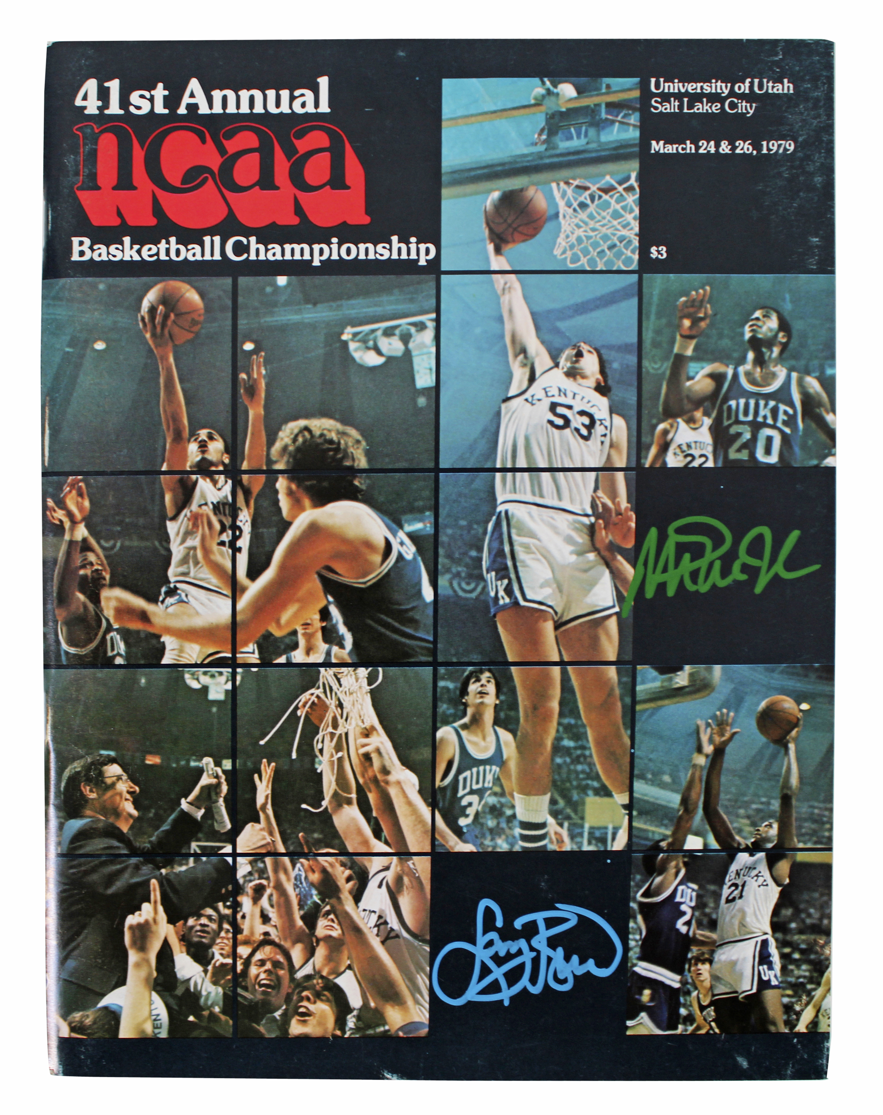 This Autographed 1979 NCAA Tournament Program has been Personally Signed by Magic Johnson & Larry Bird. This item is 100% Authentic to include a Certificate of Authenticity (COA) / hologram by Beckett Authentication Services. This is a BAS Witnessed Protection Program item which means a Beckett Authentication Service representative was present when this item was being signed. The authenticity can be verified on Beckett Authentication Services website.