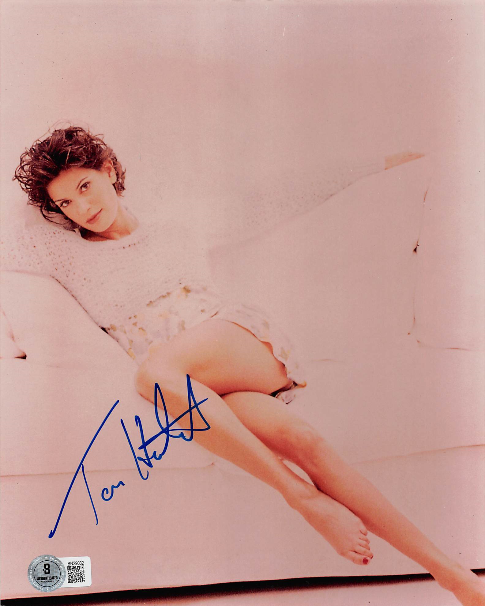 This Autographed 8x10 Sexy Photo has been Personally Signed by Teri Hatcher of Tomorrow Never Dies. This item is 100% Authentic to include a hologram by Beckett Authentication Services. This item will come with an affixed Beckett Authentication Services (BAS) authentication sticker, which includes a scannable QR code to verify authenticity. Please note that Beckett no longer provides serial-numbered COA cards, and the attached BAS sticker will serve as the complete authentication for this item. The authenticity can be verified on Beckett Authentication Services website.