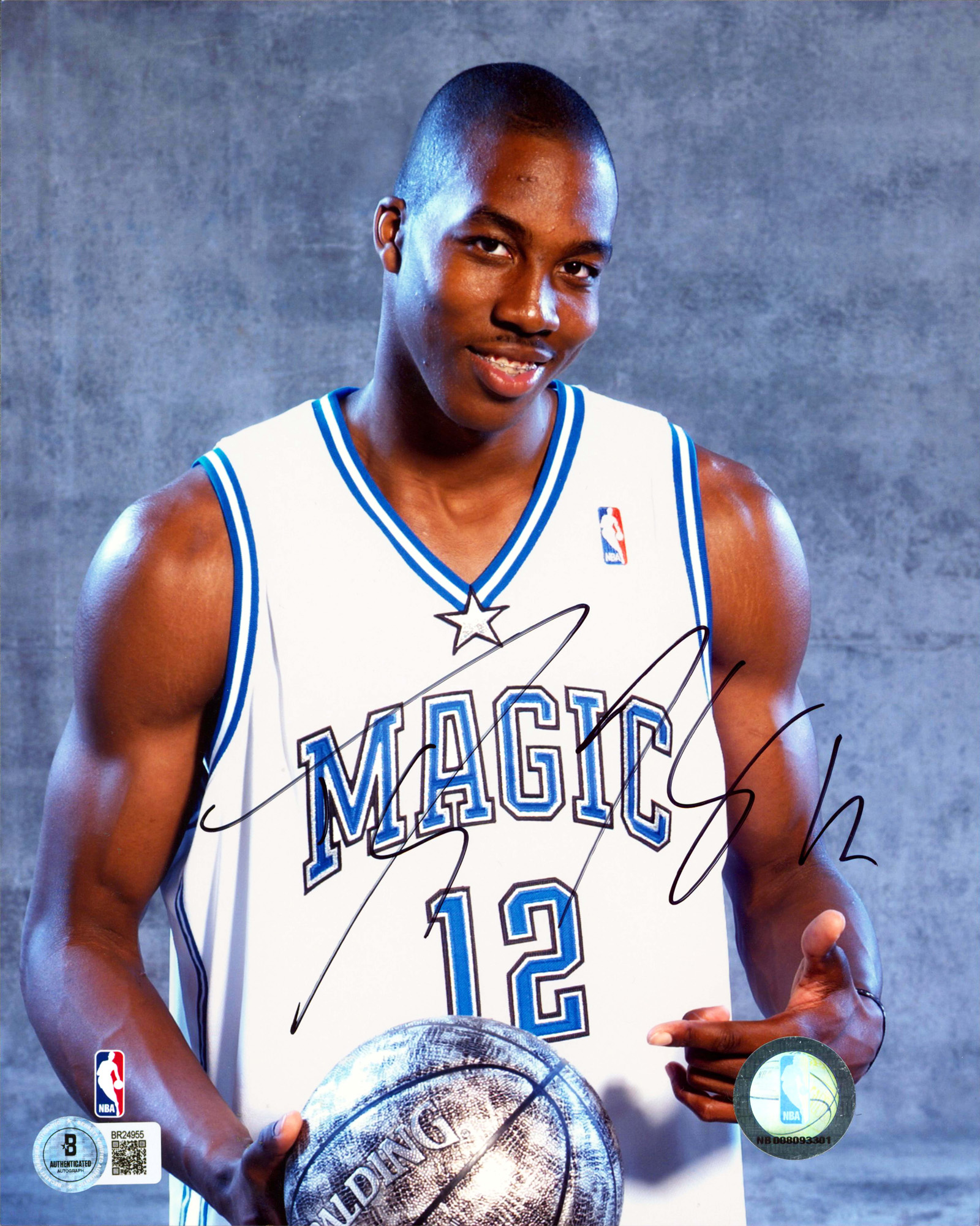 This Autographed Vertical 8x10 Photo has been Personally Signed by Dwight Howard of the Orlando Magic. This item is 100% Authentic to include a hologram by Beckett Authentication Services. This item will come with an affixed Beckett Authentication Services (BAS) authentication sticker, which includes a scannable QR code to verify authenticity. Please note that Beckett no longer provides serial-numbered COA cards, and the attached BAS sticker will serve as the complete authentication for this item. The authenticity can be verified on Beckett Authentication Services website.