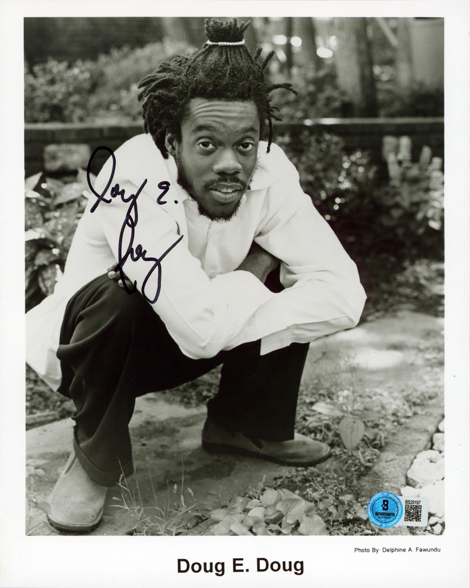 This Autographed Vertical 8x10 Photo has been Personally Signed by Doug E. Doug of Cool Runnings. This item is 100% Authentic to include a hologram by Beckett Authentication Services. This item will come with an affixed Beckett Authentication Services (BAS) authentication sticker, which includes a scannable QR code to verify authenticity. Please note that Beckett no longer provides serial-numbered COA cards, and the attached BAS sticker will serve as the complete authentication for this item. The authenticity can be verified on Beckett Authentication Services website. Normal handling wear is present including a crease on the right side.