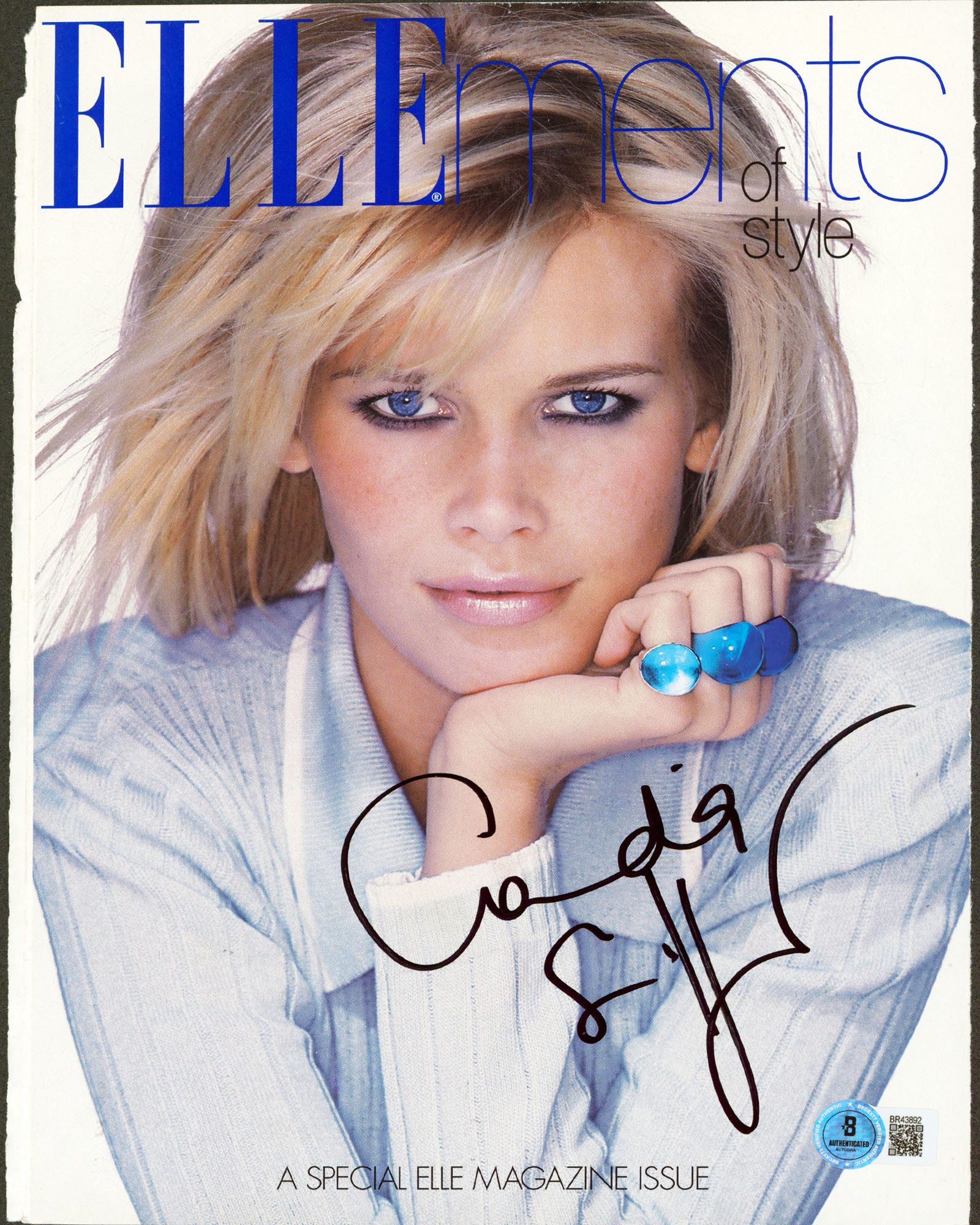 This Autographed Elle November 1995 Magazine Cover has been Personally Signed by Claudia Schiffer. This item is 100% Authentic to include a hologram by Beckett Authentication Services. This item will come with an affixed Beckett Authentication Services (BAS) authentication sticker, which includes a scannable QR code to verify authenticity. Please note that Beckett no longer provides serial-numbered COA cards, and the attached BAS sticker will serve as the complete authentication for this item. The authenticity can be verified on Beckett Authentication Services website. Normal handling wear is present.