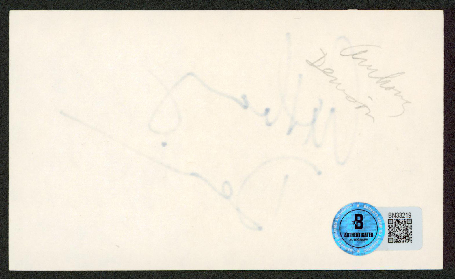 This Autographed 3x5 Index Card has been Personally Signed by Anthony Denison of The Closer. This item is 100% Authentic to include a hologram by Beckett Authentication Services. This item will come with an affixed Beckett Authentication Services (BAS) authentication sticker, which includes a scannable QR code to verify authenticity. Please note that Beckett no longer provides serial-numbered COA cards, and the attached BAS sticker will serve as the complete authentication for this item. The authenticity can be verified on Beckett Authentication Services website.