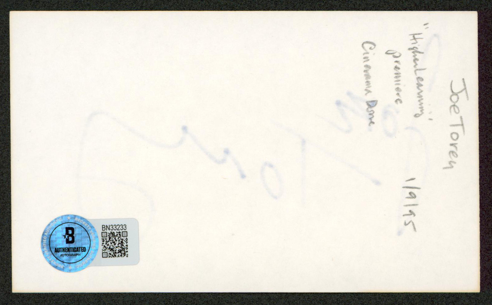 This Autographed 3x5 Index Card has been Personally Signed by Joe Torry of NCIS. This item is 100% Authentic to include a hologram by Beckett Authentication Services. This item will come with an affixed Beckett Authentication Services (BAS) authentication sticker, which includes a scannable QR code to verify authenticity. Please note that Beckett no longer provides serial-numbered COA cards, and the attached BAS sticker will serve as the complete authentication for this item. The authenticity can be verified on Beckett Authentication Services website.