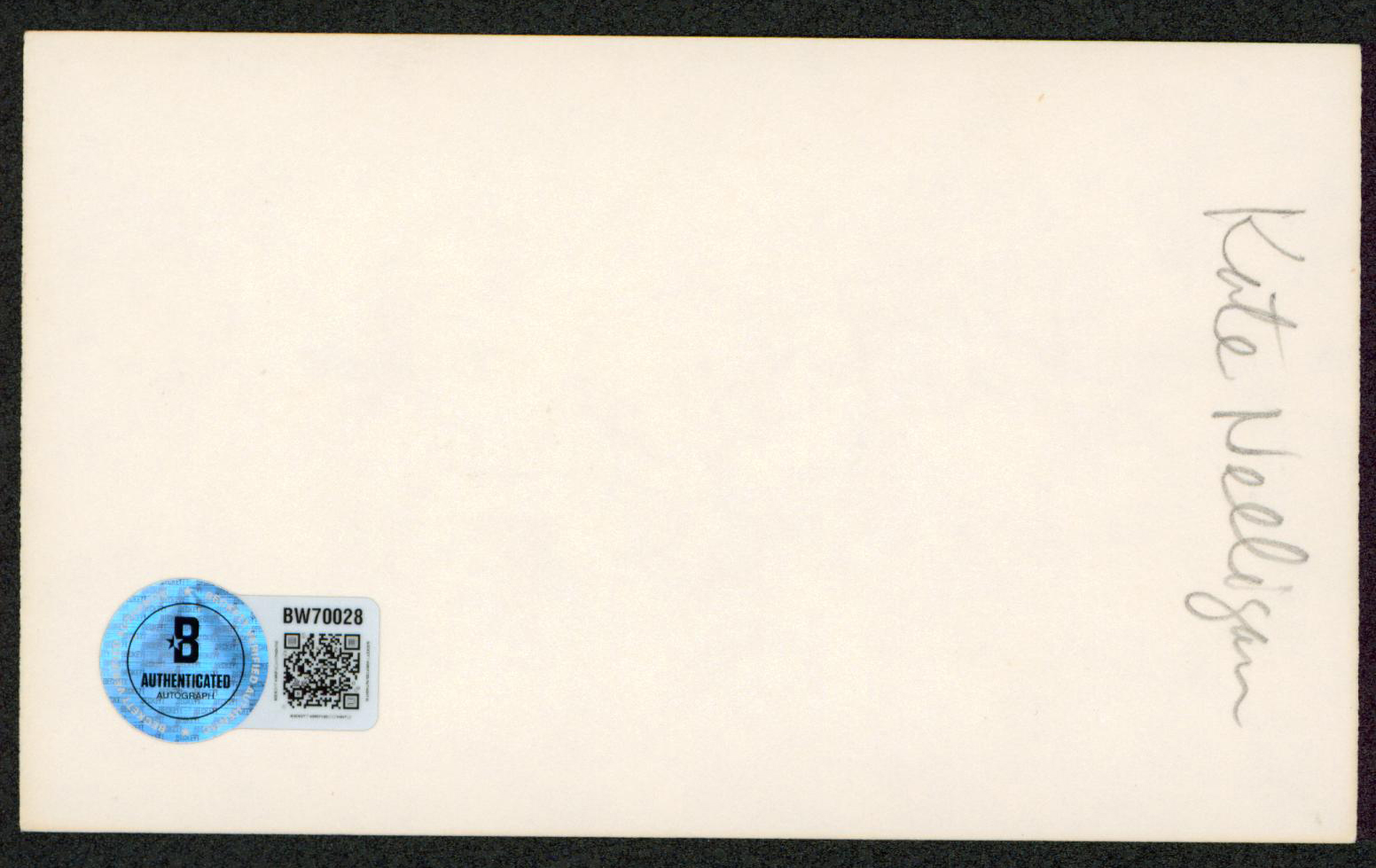 This Autographed 3x5 Index Card has been Personally Signed by Kate Nelligan of The Cider House Rules. This item is 100% Authentic to include a hologram by Beckett Authentication Services. This item will come with an affixed Beckett Authentication Services (BAS) authentication sticker, which includes a scannable QR code to verify authenticity. Please note that Beckett no longer provides serial-numbered COA cards, and the attached BAS sticker will serve as the complete authentication for this item. The authenticity can be verified on Beckett Authentication Services website.