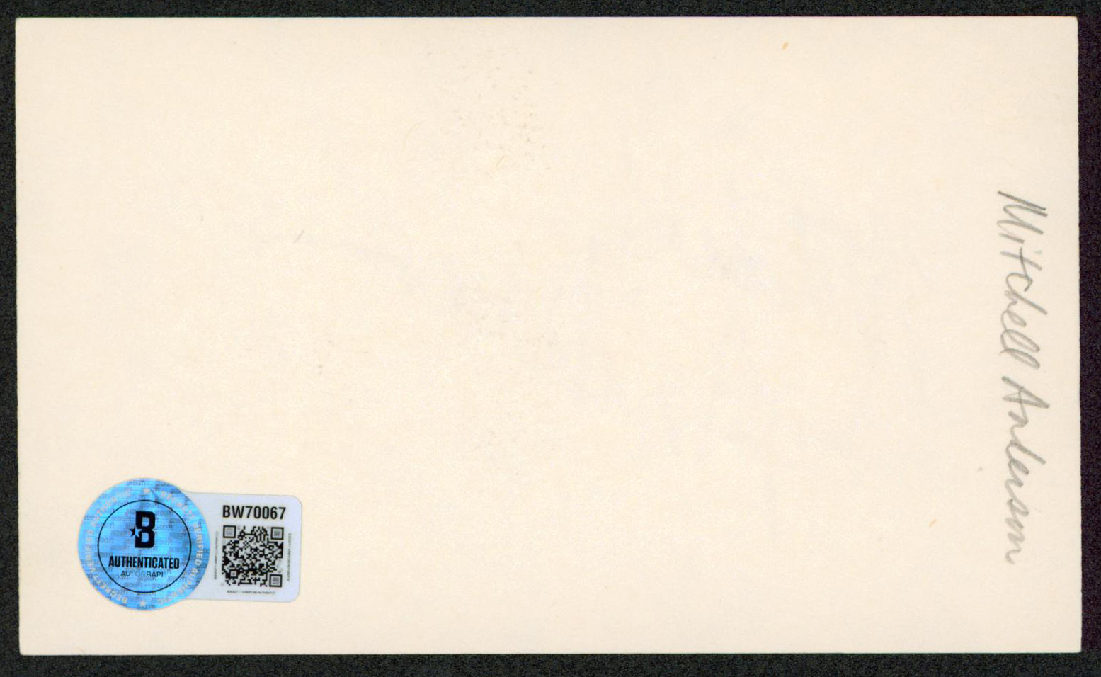 This Autographed 3x5 Index Card has been Personally Signed by Mitchell Anderson of Party of Five. This item is 100% Authentic to include a hologram by Beckett Authentication Services. This item will come with an affixed Beckett Authentication Services (BAS) authentication sticker, which includes a scannable QR code to verify authenticity. Please note that Beckett no longer provides serial-numbered COA cards, and the attached BAS sticker will serve as the complete authentication for this item. The authenticity can be verified on Beckett Authentication Services website.