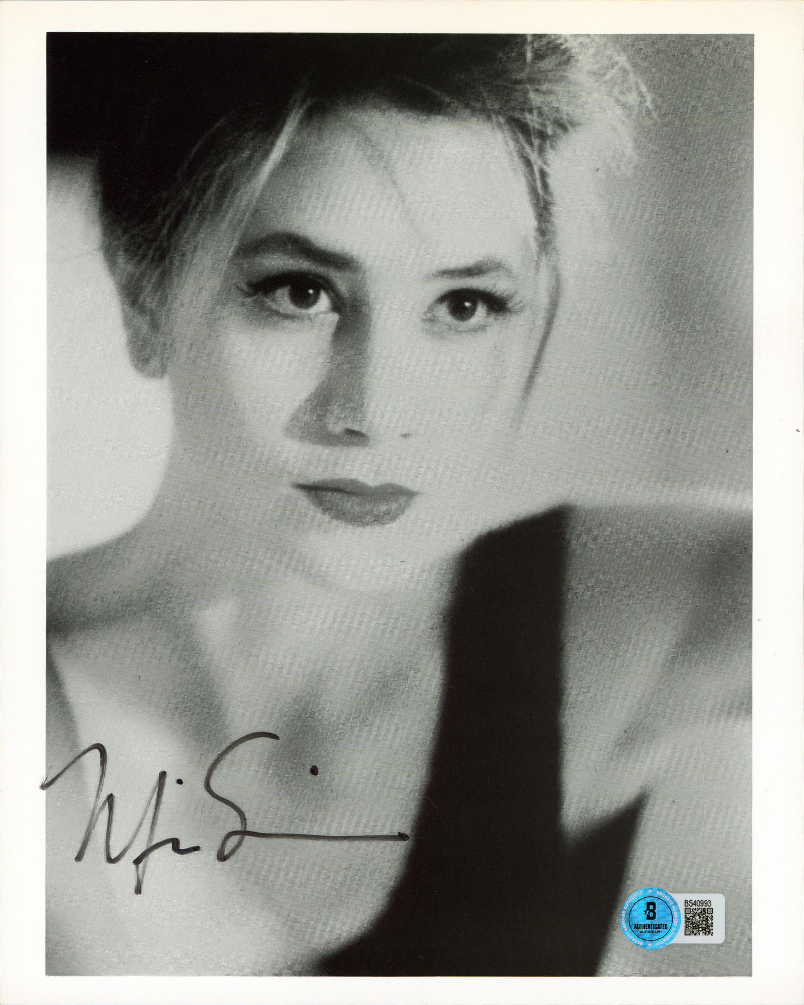 This Autographed Vertical 8x10 Photo has been Personally Signed by Mira Sorvino of Romy and Michele's High School Reunion. This item is 100% Authentic to include a hologram by Beckett Authentication Services. This item will come with an affixed Beckett Authentication Services (BAS) authentication sticker, which includes a scannable QR code to verify authenticity. Please note that Beckett no longer provides serial-numbered COA cards, and the attached BAS sticker will serve as the complete authentication for this item. The authenticity can be verified on Beckett Authentication Services website.