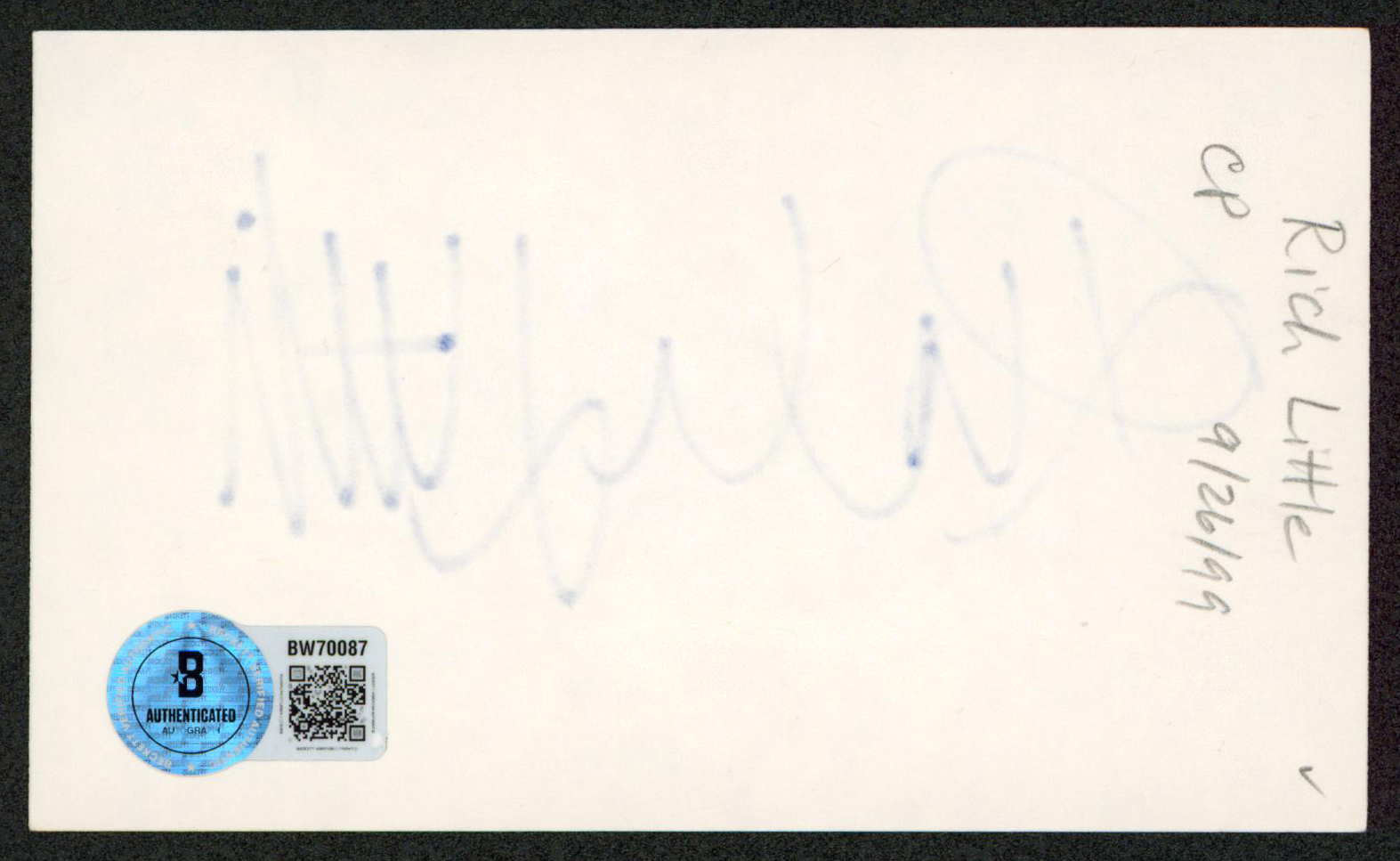 This Autographed 3x5 Index Card has been Personally Signed by Rich Little of Comedian. This item is 100% Authentic to include a hologram by Beckett Authentication Services. This item will come with an affixed Beckett Authentication Services (BAS) authentication sticker, which includes a scannable QR code to verify authenticity. Please note that Beckett no longer provides serial-numbered COA cards, and the attached BAS sticker will serve as the complete authentication for this item. The authenticity can be verified on Beckett Authentication Services website.