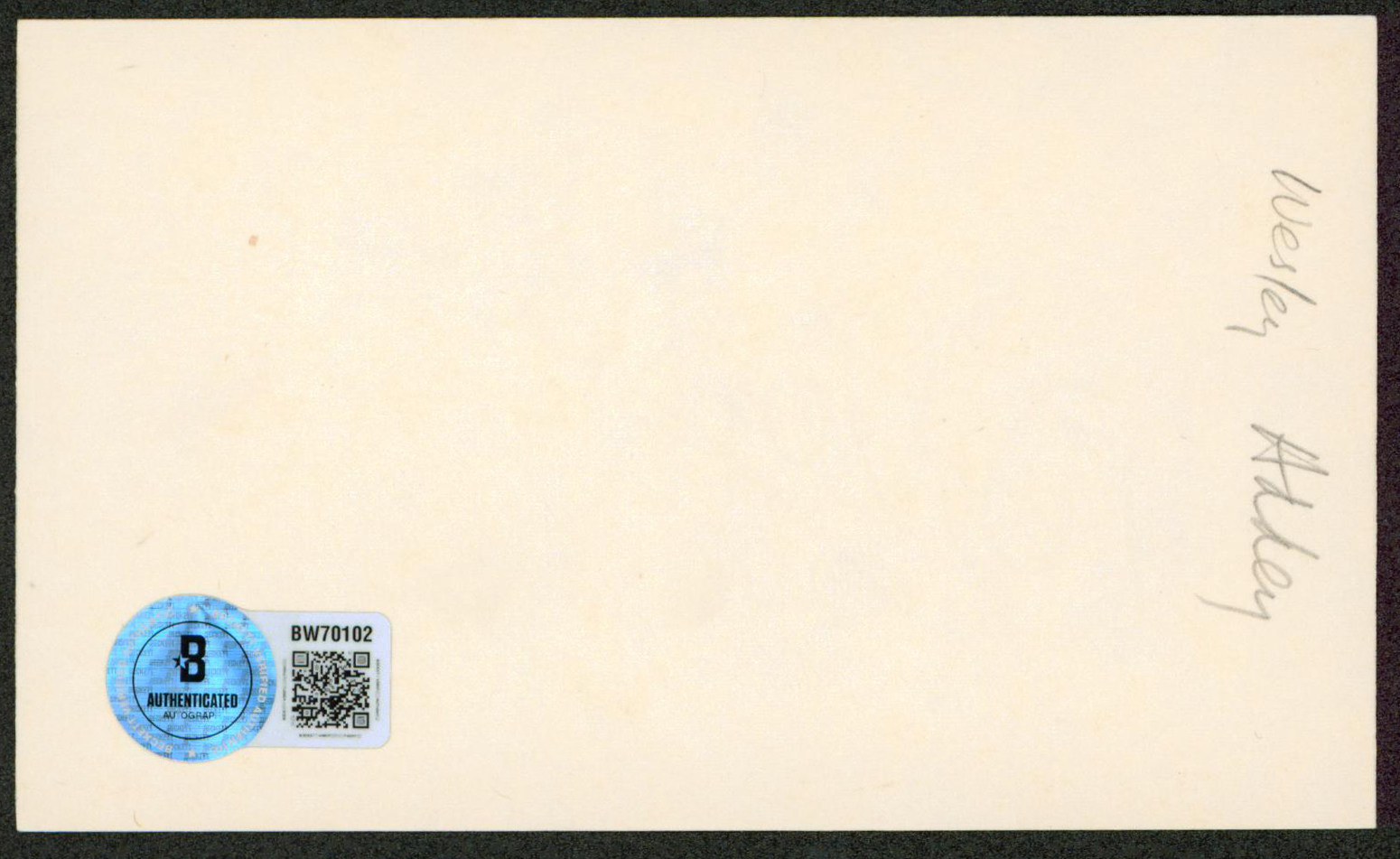 This Autographed 3x5 Index Card has been Personally Signed by Wesley Addy of What Ever Happened to Baby Jane. This item is 100% Authentic to include a hologram by Beckett Authentication Services. This item will come with an affixed Beckett Authentication Services (BAS) authentication sticker, which includes a scannable QR code to verify authenticity. Please note that Beckett no longer provides serial-numbered COA cards, and the attached BAS sticker will serve as the complete authentication for this item. The authenticity can be verified on Beckett Authentication Services website.