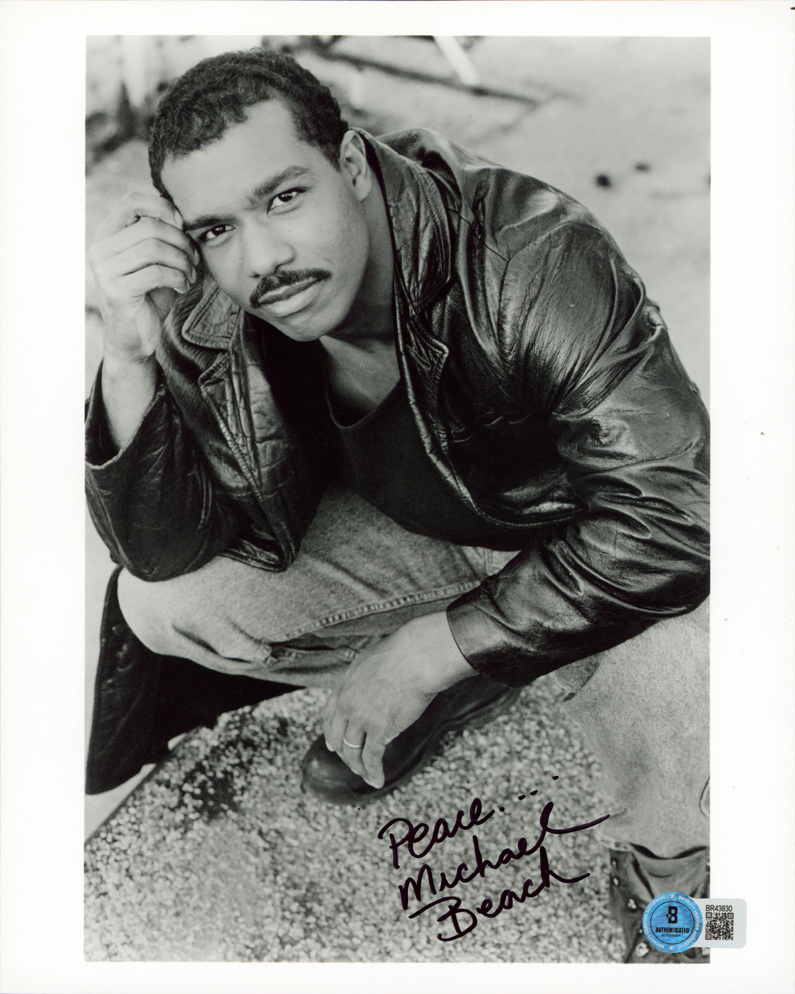 This Autographed Vertical 8x10 Photo with the inscription of "Peace" has been Personally Signed by Michael Beach of The Perfect Couple. This item is 100% Authentic to include a hologram by Beckett Authentication Services. This item will come with an affixed Beckett Authentication Services (BAS) authentication sticker, which includes a scannable QR code to verify authenticity. Please note that Beckett no longer provides serial-numbered COA cards, and the attached BAS sticker will serve as the complete authentication for this item. The authenticity can be verified on Beckett Authentication Services website. Normal handling wear is present.