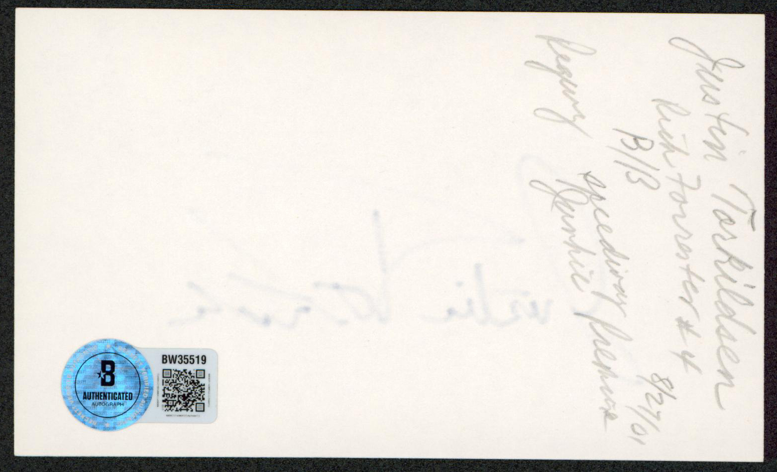 Justin Torkildsen The Bold and the Beautiful Signed 3x5 Index Card BAS #BW35519