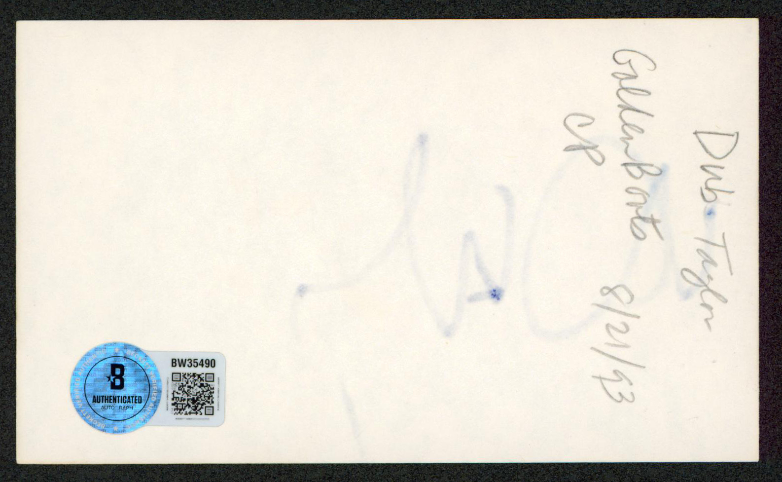 This Autographed 3x5 Index Card has been Personally Signed by Dub Taylor of Bonnie & Clyde. This item is 100% Authentic to include a hologram by Beckett Authentication Services. This item will come with an affixed Beckett Authentication Services (BAS) authentication sticker, which includes a scannable QR code to verify authenticity. Please note that Beckett no longer provides serial-numbered COA cards, and the attached BAS sticker will serve as the complete authentication for this item. The authenticity can be verified on Beckett Authentication Services website.