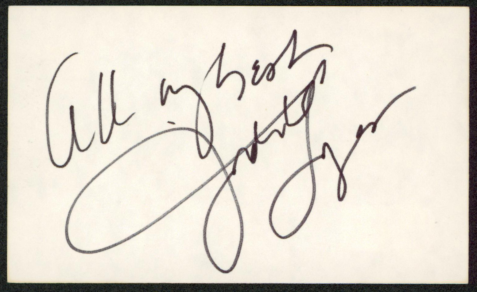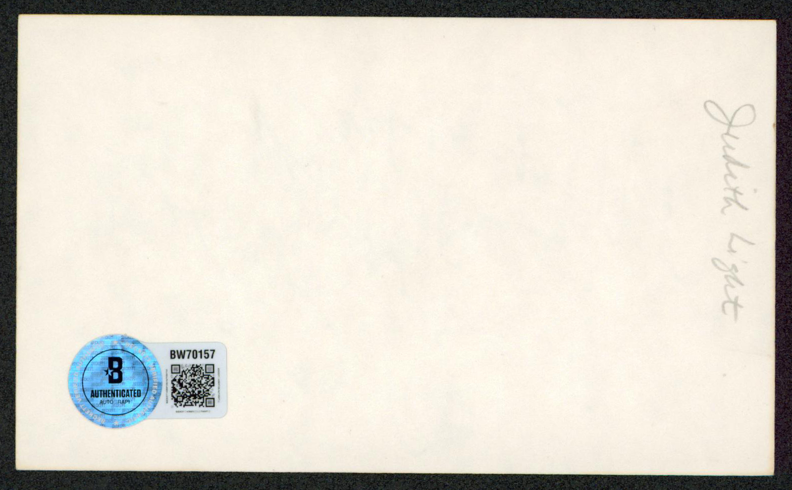 This Autographed 3x5 Index Card with the inscription of "All My Best" has been Personally Signed by Judith Light of Who's the Boss?. This item is 100% Authentic to include a hologram by Beckett Authentication Services. This item will come with an affixed Beckett Authentication Services (BAS) authentication sticker, which includes a scannable QR code to verify authenticity. Please note that Beckett no longer provides serial-numbered COA cards, and the attached BAS sticker will serve as the complete authentication for this item. The authenticity can be verified on Beckett Authentication Services website.