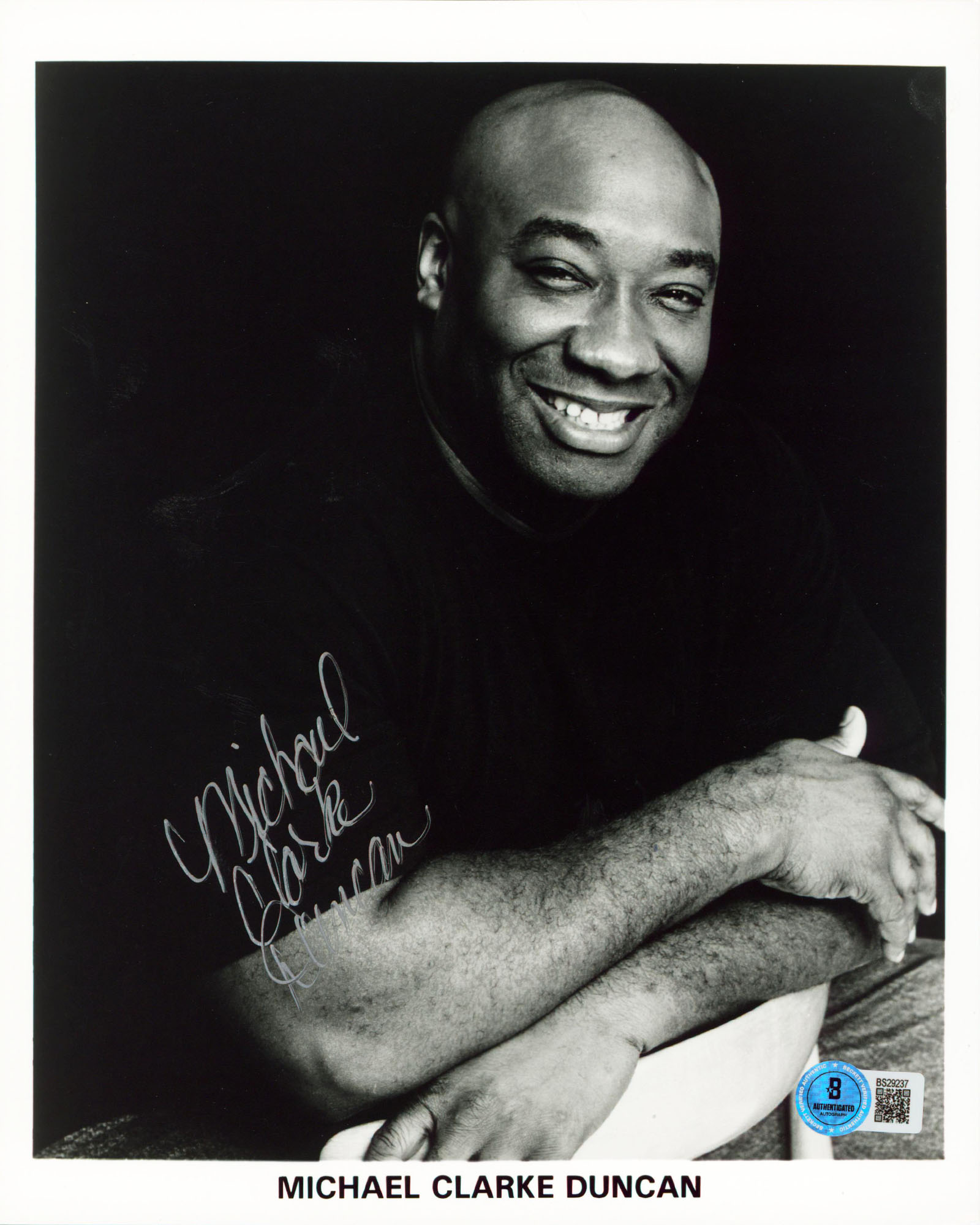 This Autographed 8x10 Photo has been Personally Signed by Michael Clarke Duncan of The Green Mile. This item is 100% Authentic to include a hologram by Beckett Authentication Services. This item will come with an affixed Beckett Authentication Services (BAS) authentication sticker, which includes a scannable QR code to verify authenticity. Please note that Beckett no longer provides serial-numbered COA cards, and the attached BAS sticker will serve as the complete authentication for this item. The authenticity can be verified on Beckett Authentication Services website. Normal handling wear is present.