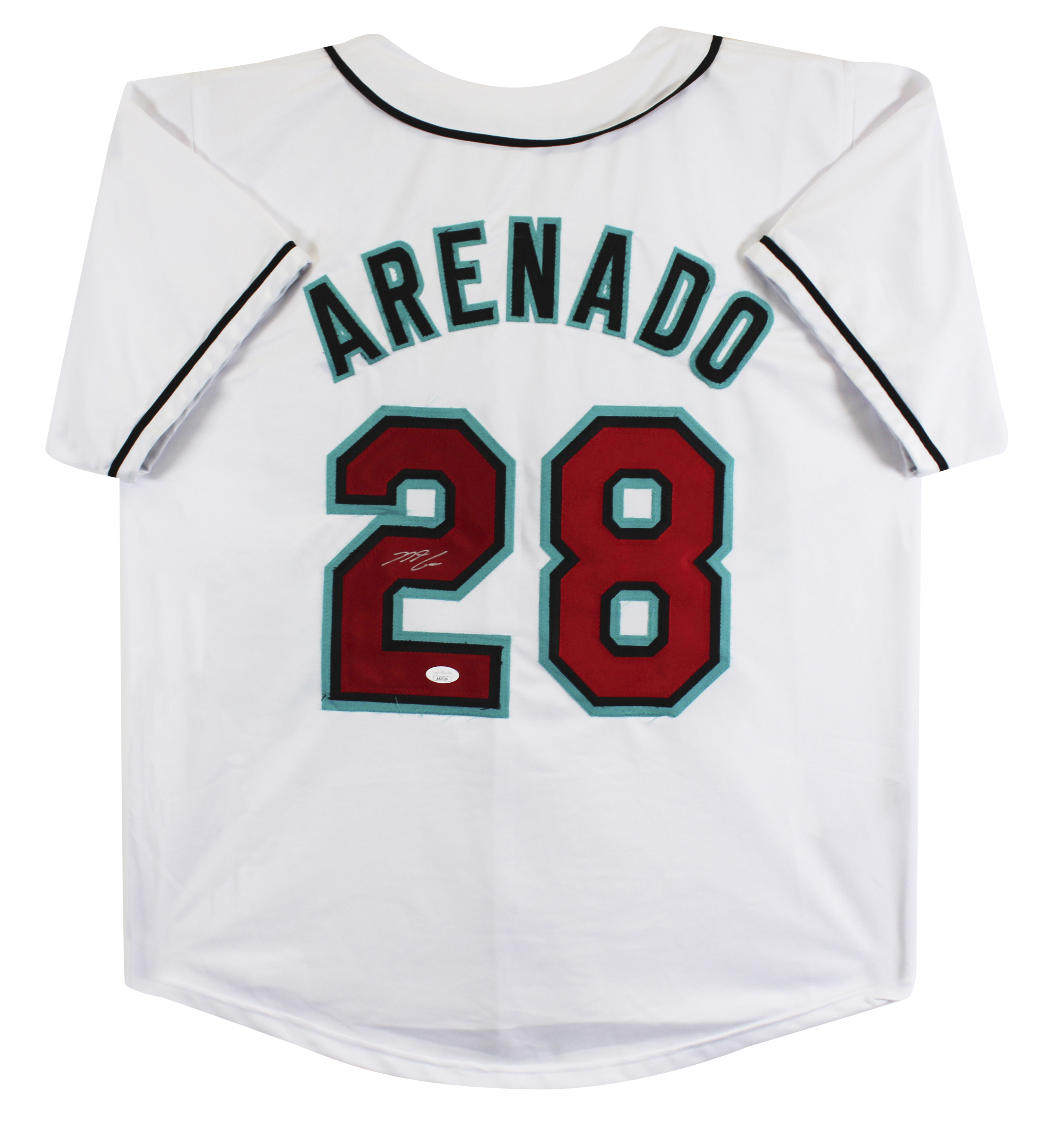 This Autographed White Pro Style Jersey has been Personally Signed by Nolan Arenado of the Arizona Diamondbacks. This item is 100% Authentic to include a Certificate of Authenticity (COA) / hologram by JSA. We have multiples of this same item. While the photographs are representative of this item, the size, placement and strength of the signature may vary. Each item is hand signed, therefore, each autograph is unique. This is a X-Large sized, non-branded, custom-stitched Jersey.